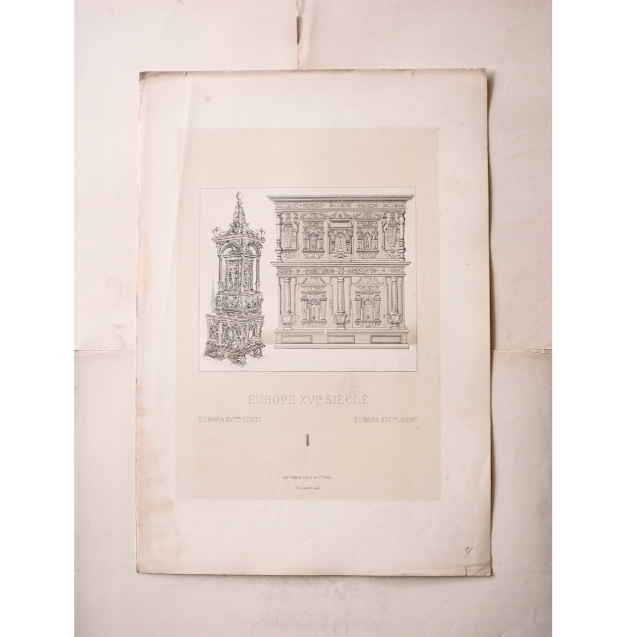 19世紀 40c 欧州泡沫の日々と室内装飾図版g 16世紀 フランス アンティーク