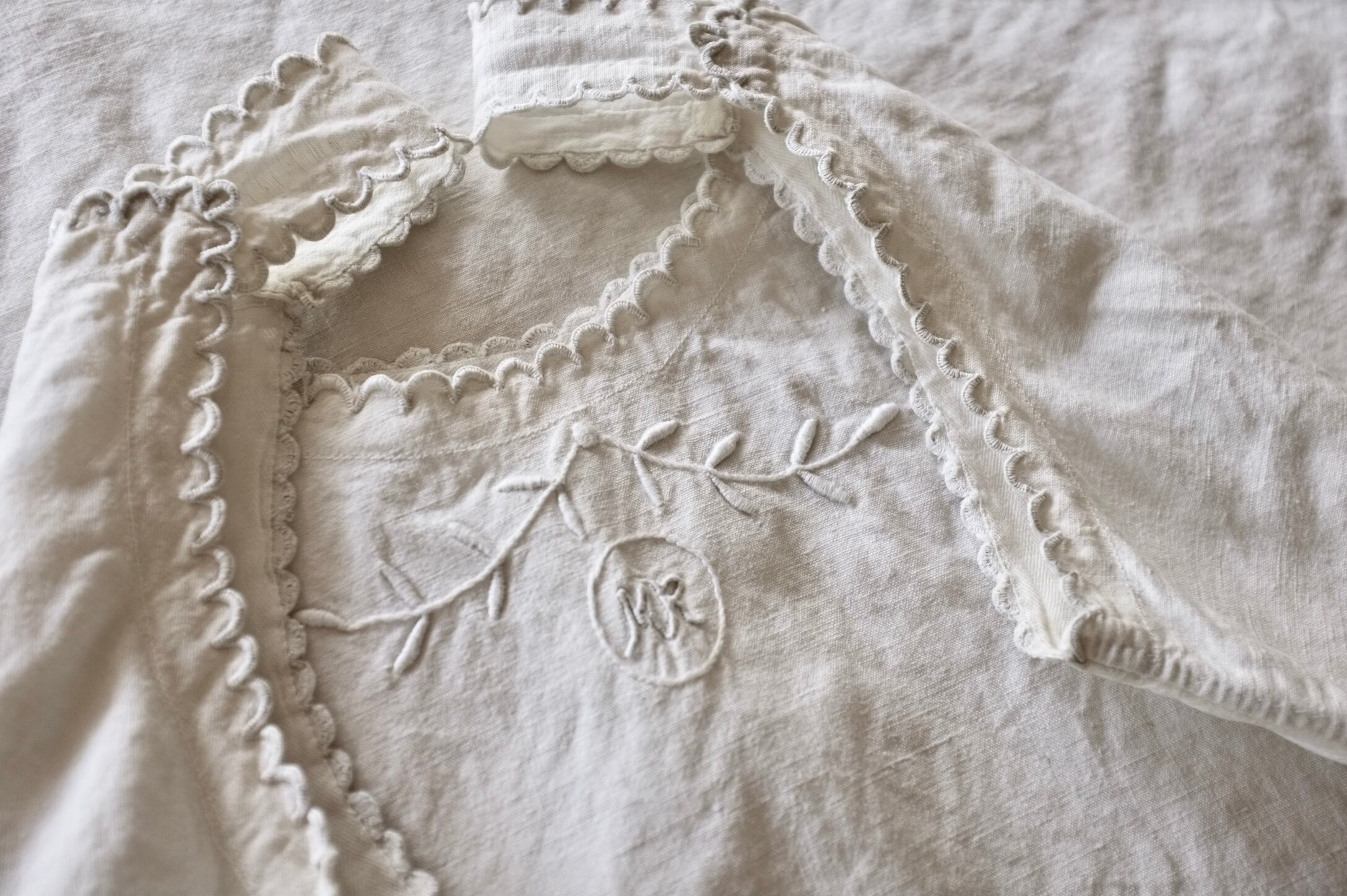 やさしいエクリュ色のアンティークワンピース。