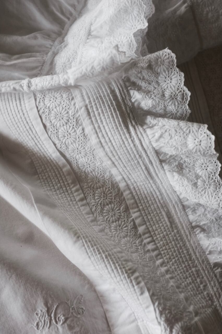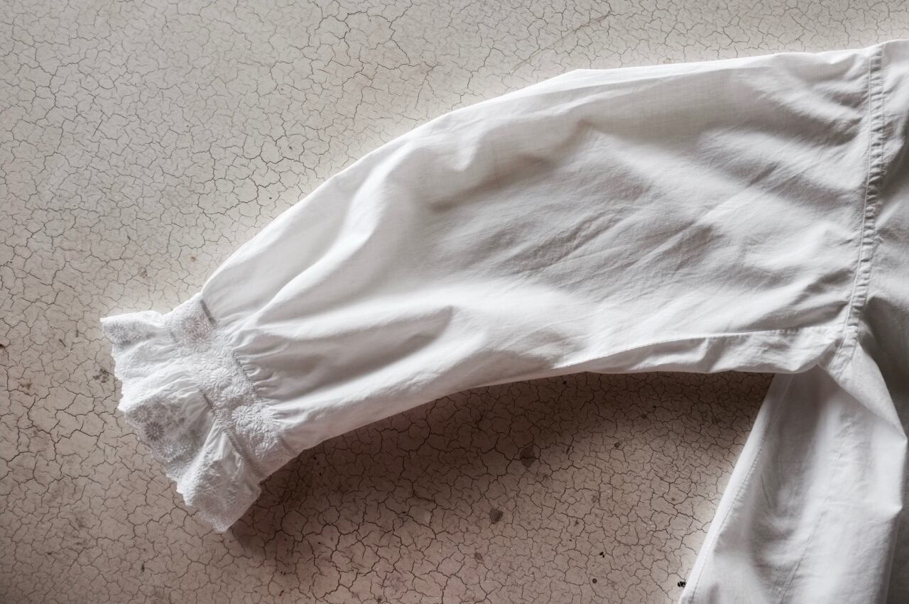 フランス 1900s 白花の反復と濃密な白の香りのフリルレースブラウス アンティーク