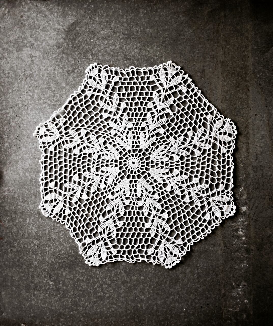 フランス リネン 36c 幾何学の愛好者へ ハ長調的レースドイリーb ヴィンテージ