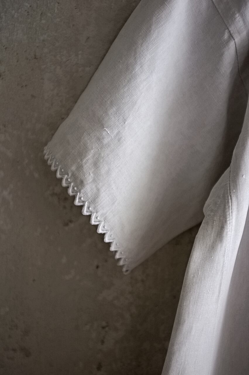 フランス 1900s リネン 球を飲み込んだサーカス旗とモノグラムのあるギャザーワンピース アンティーク