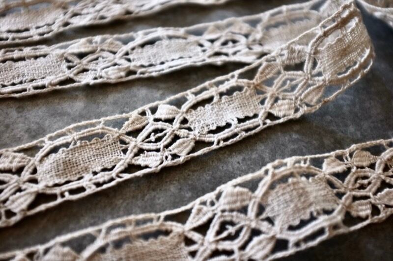 フランス 1900s 100x3.5c 鏡の国の花園とハンドワークボビンレース アンティーク br90n