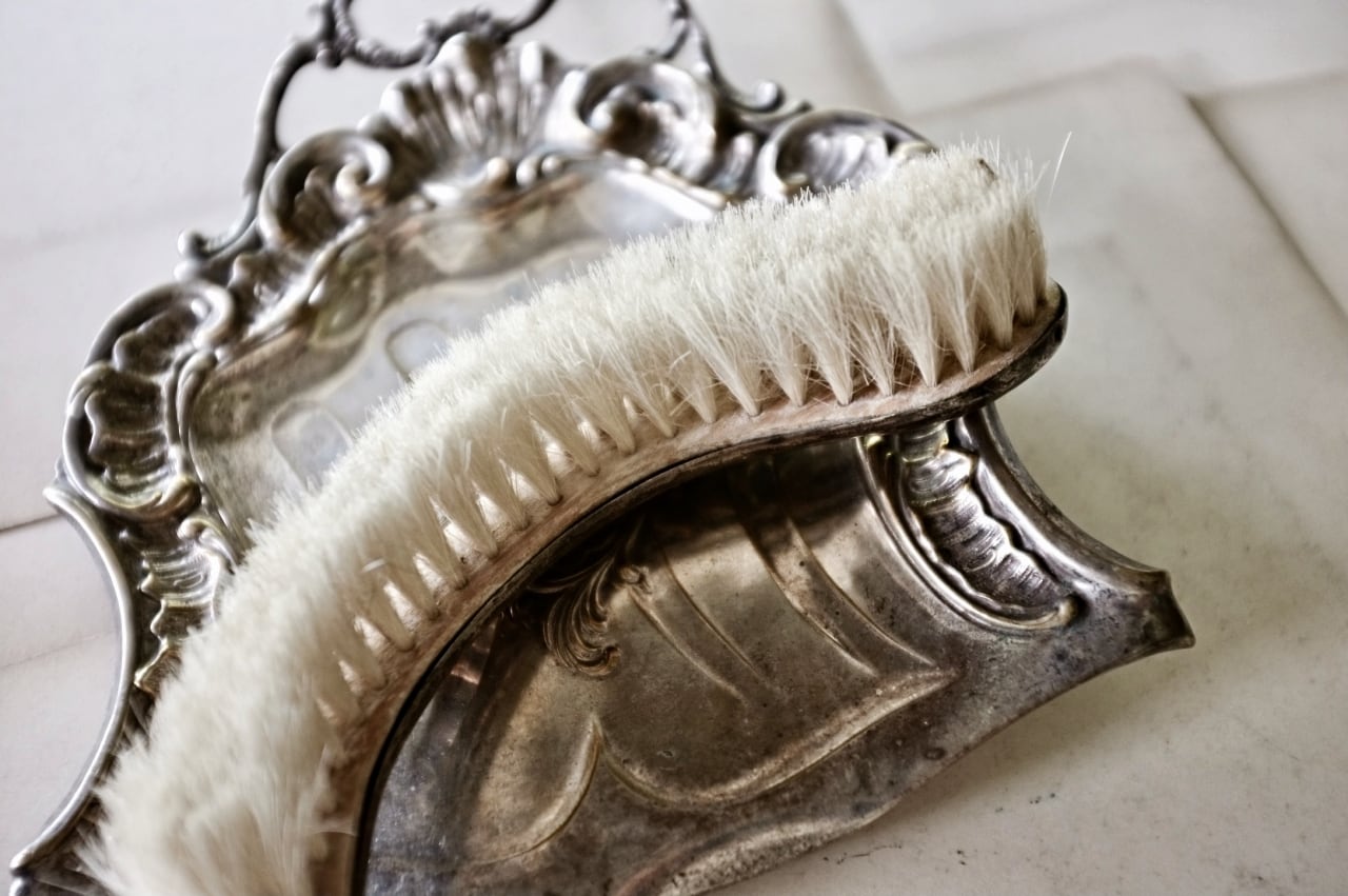フランス 平面のグロッタ 貝と薔薇とロカイユとロココ的ダストパン&ブラシセット アンティーク