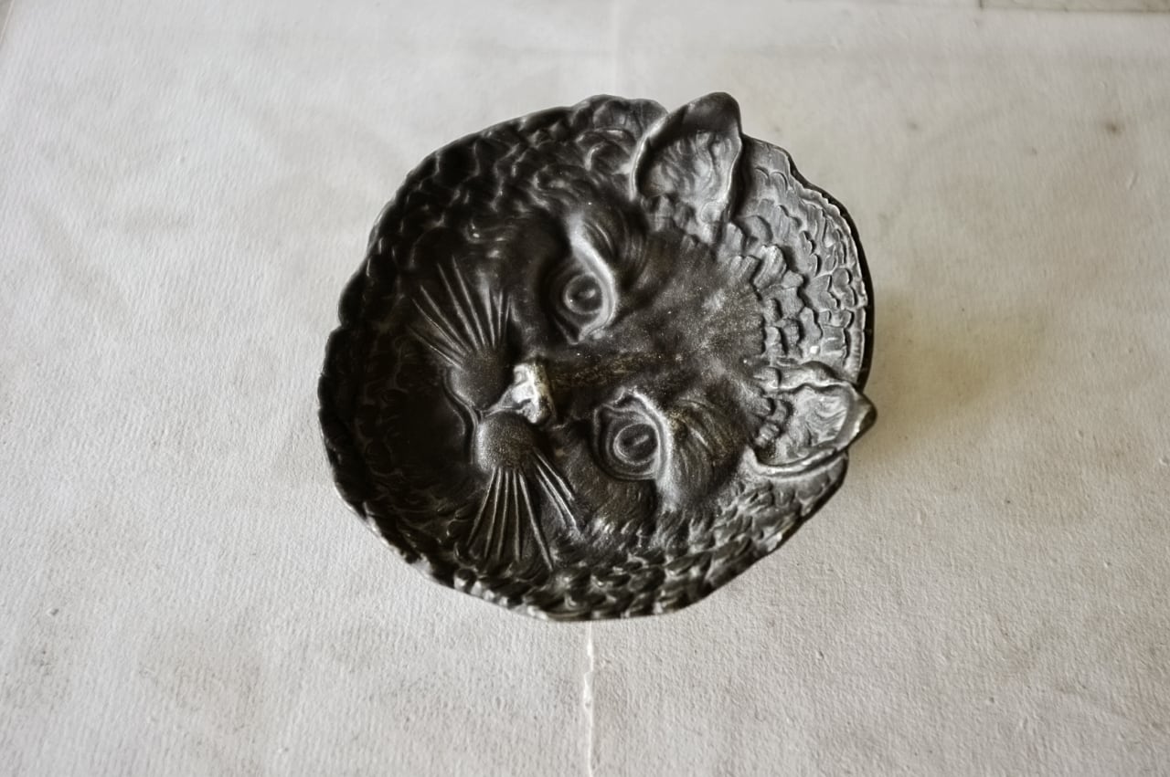 フランス ヒポコンデリー気質の尨猫とトレイ ブロンズ アンティーク