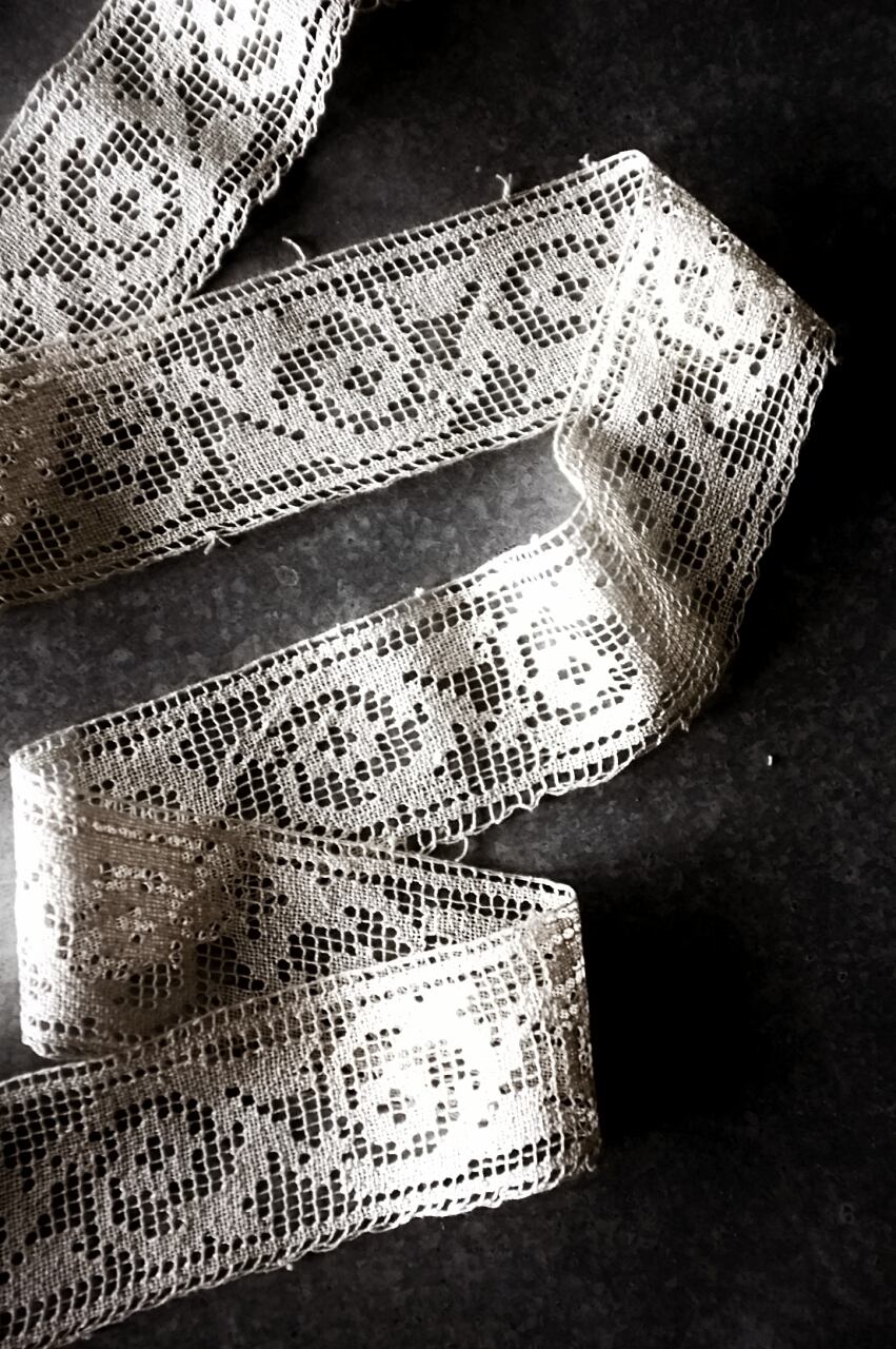 フランス 1900s 古薔薇の行進とハンドワークフィレレース 100x6c アンティーク