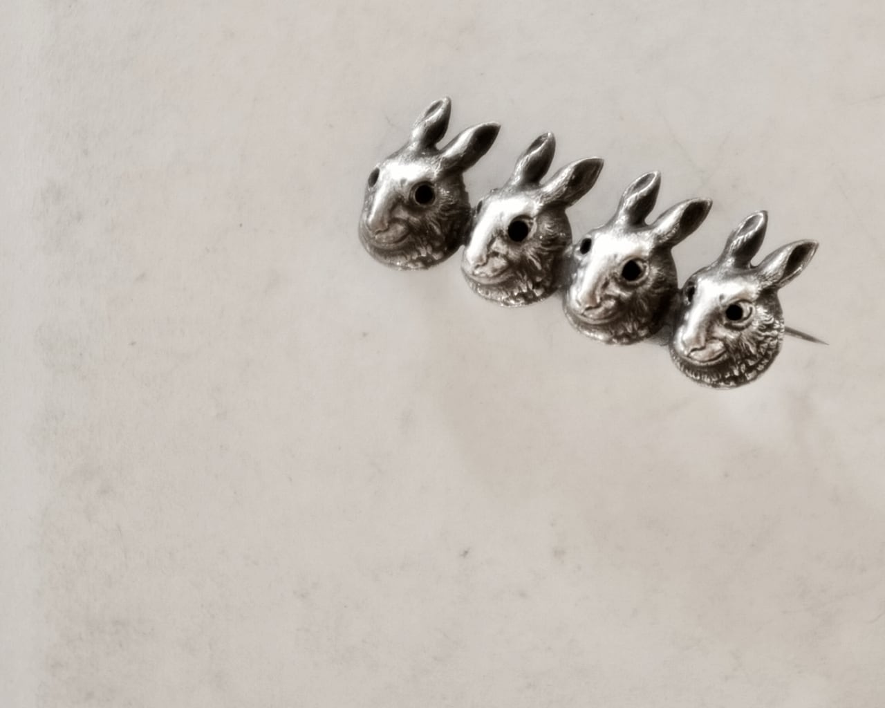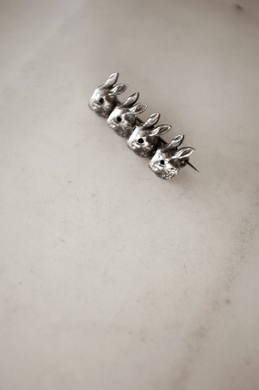 フランス 4人のうさぎとアンニュイなシルバーブローチ アンティーク