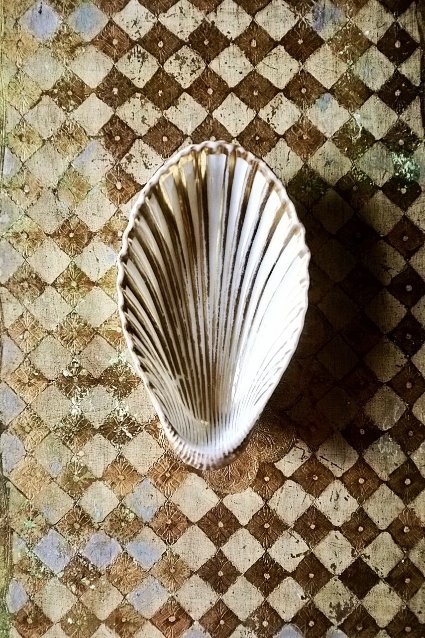 19世紀 金の海から 帝政様式 金の貝と大きなラヴィエb パリ窯 アンティーク