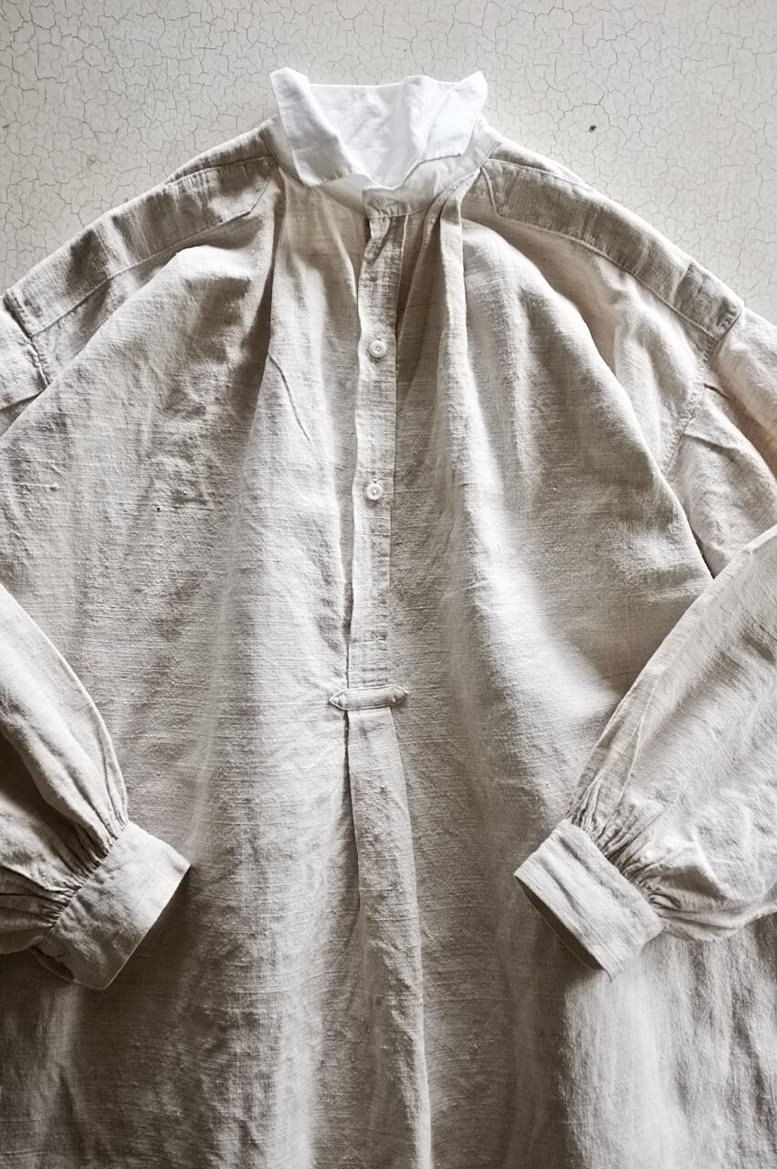 1900s フランス 清貧の画家へ 手織りシャンブルリネンによるグランパシャツ アンティーク