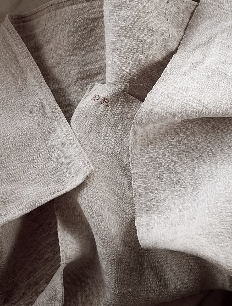 19世紀 フランス 76c 手織りリネン モノグラムと有機的リネンクロス アンティーク