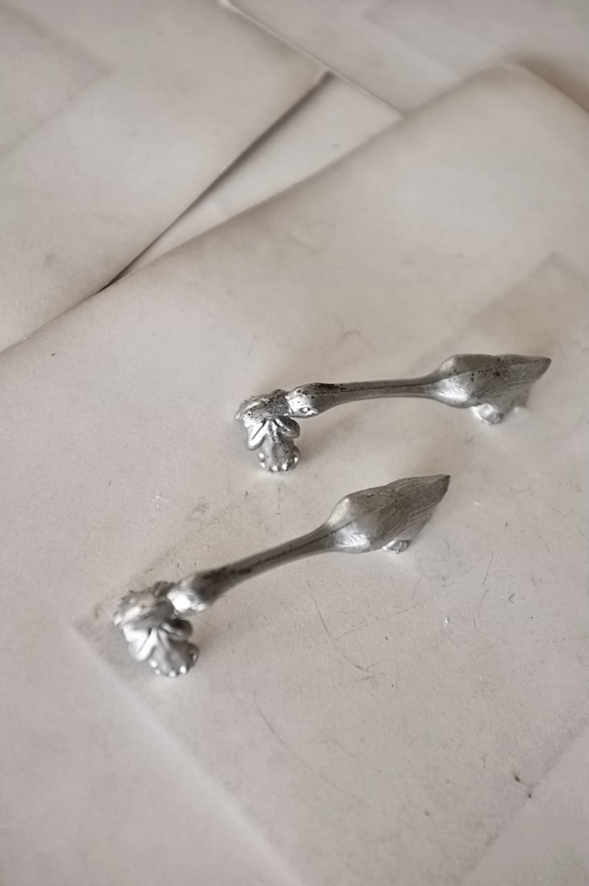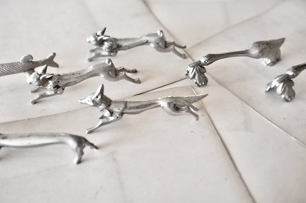 30s フランス 黙想する動物たちとアールデコ的カトラリーレスト 鷺さんと蛙さんb アンティーク