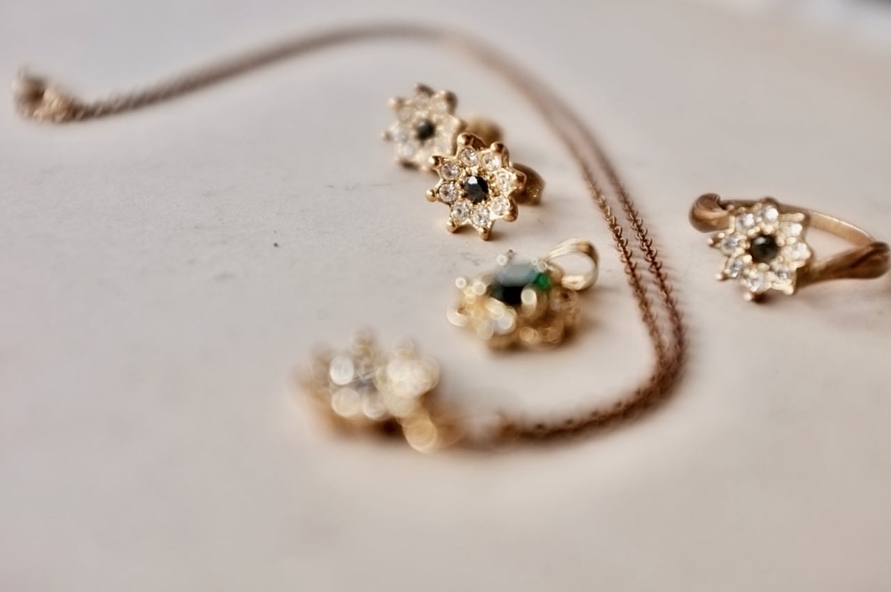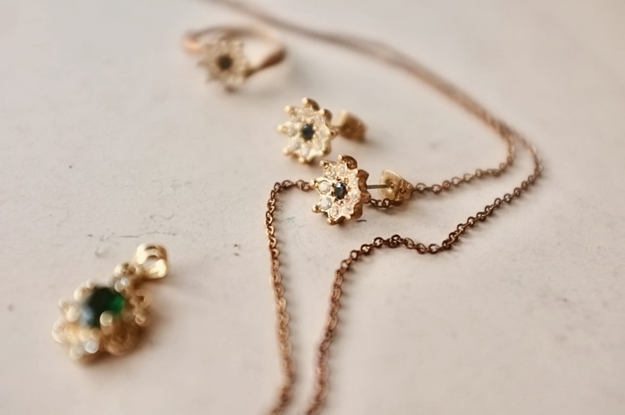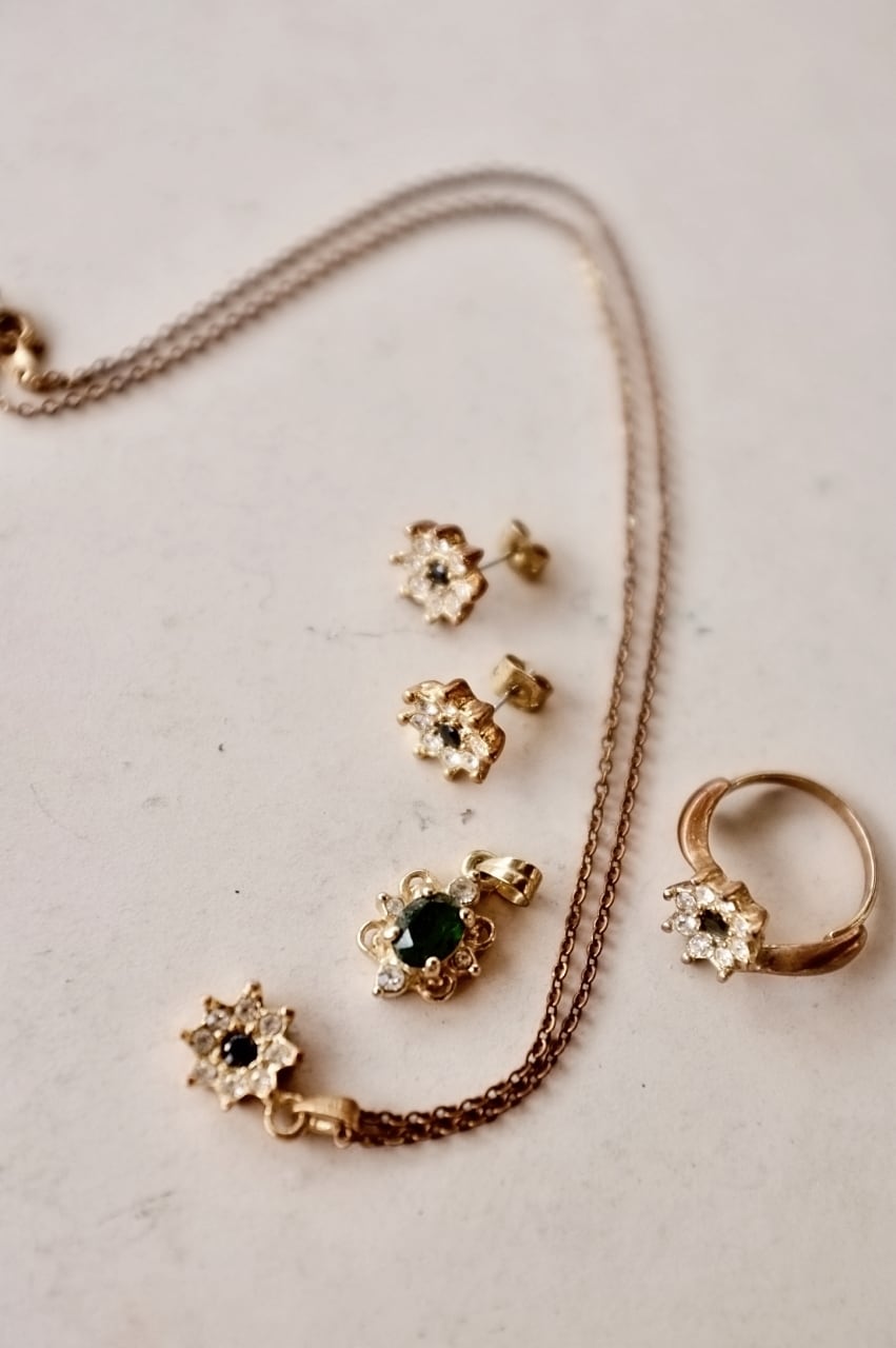 フランス 緑星のエルフのためのネックレス ピアス リングセット ヴィンテージ