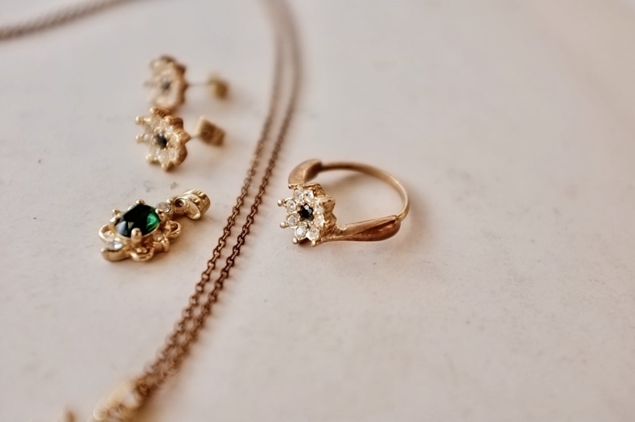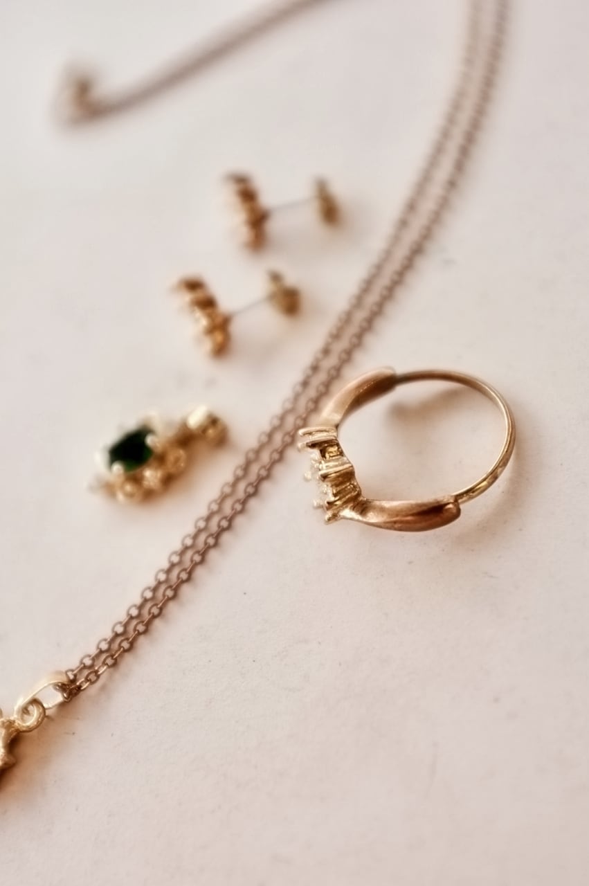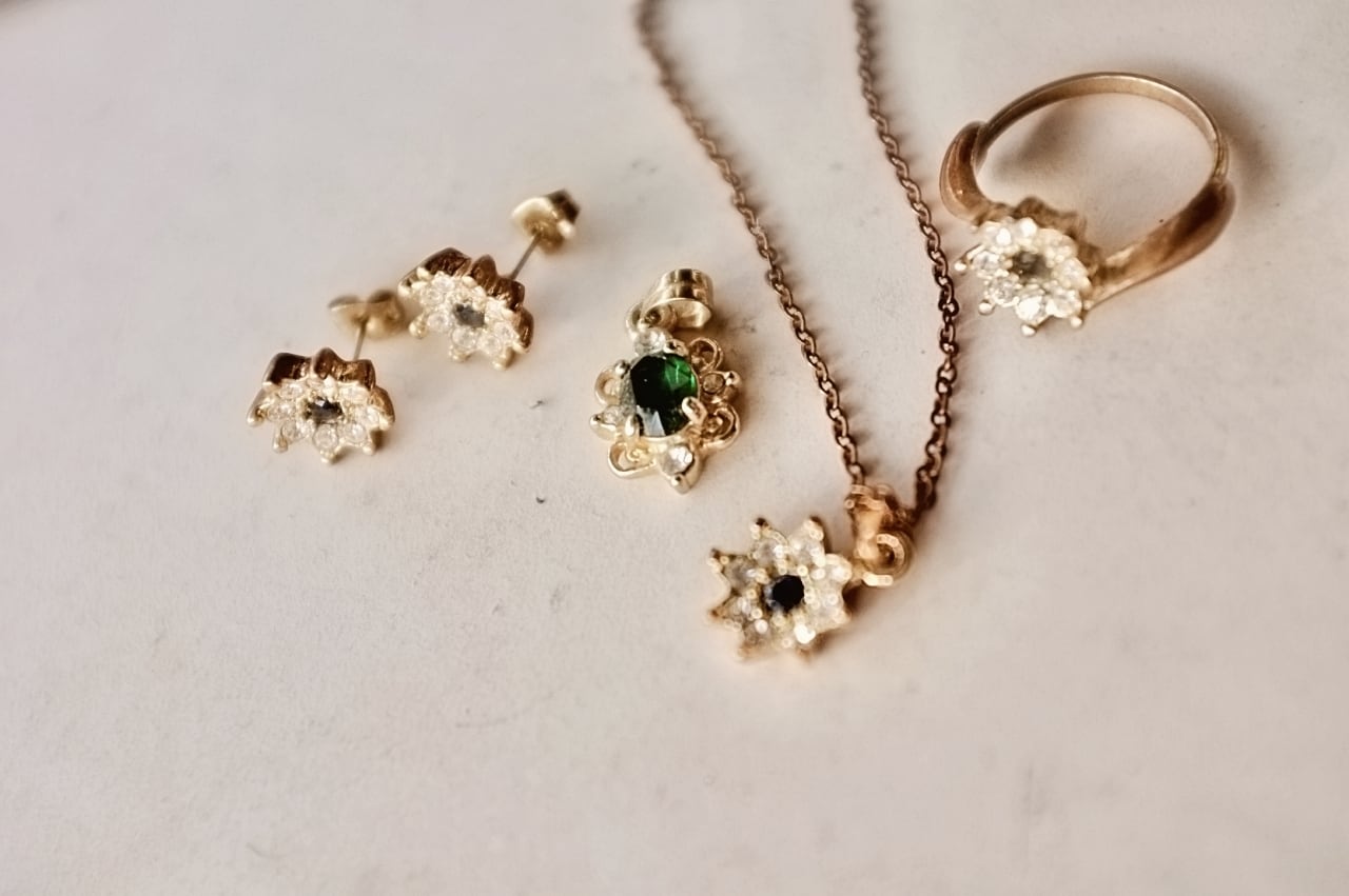 フランス 緑星のエルフのためのネックレス ピアス リングセット ヴィンテージ