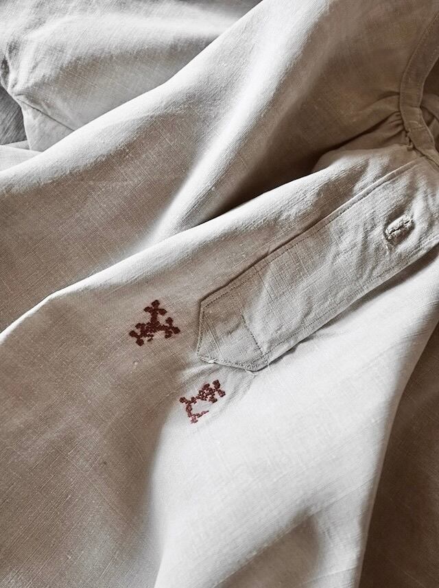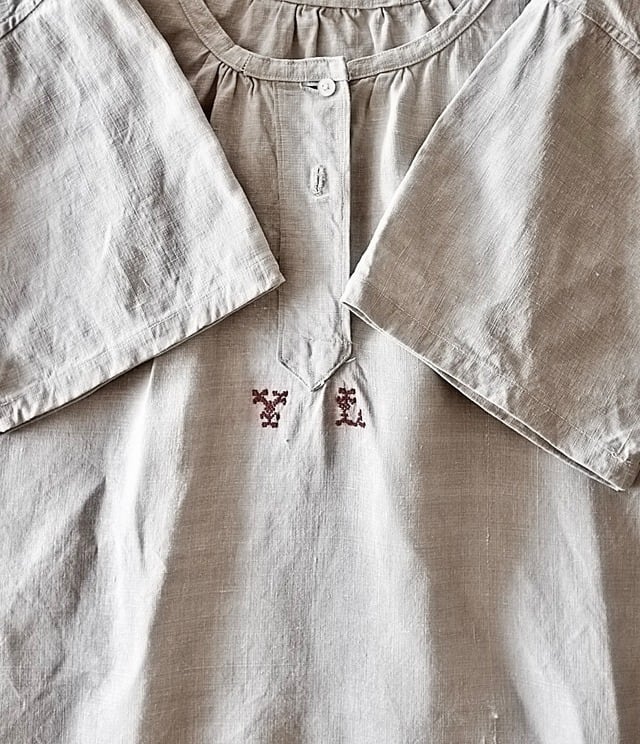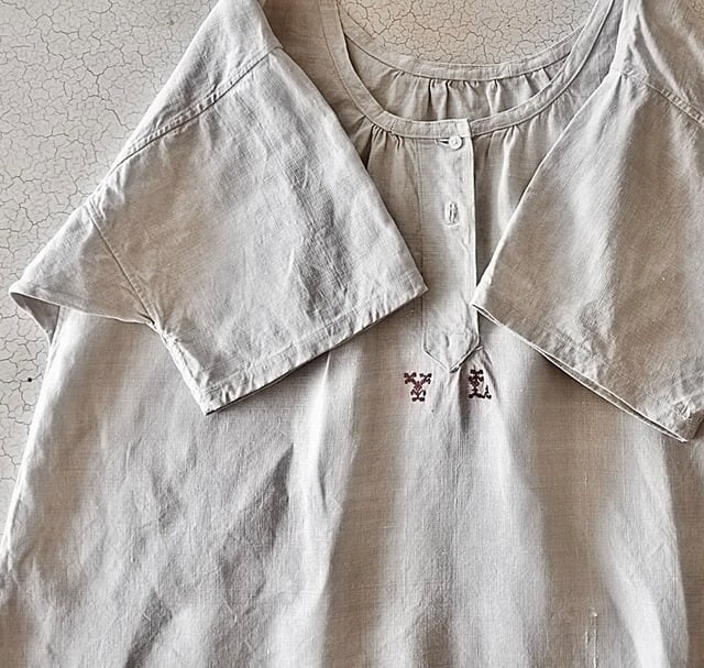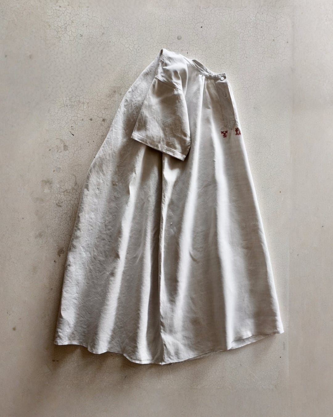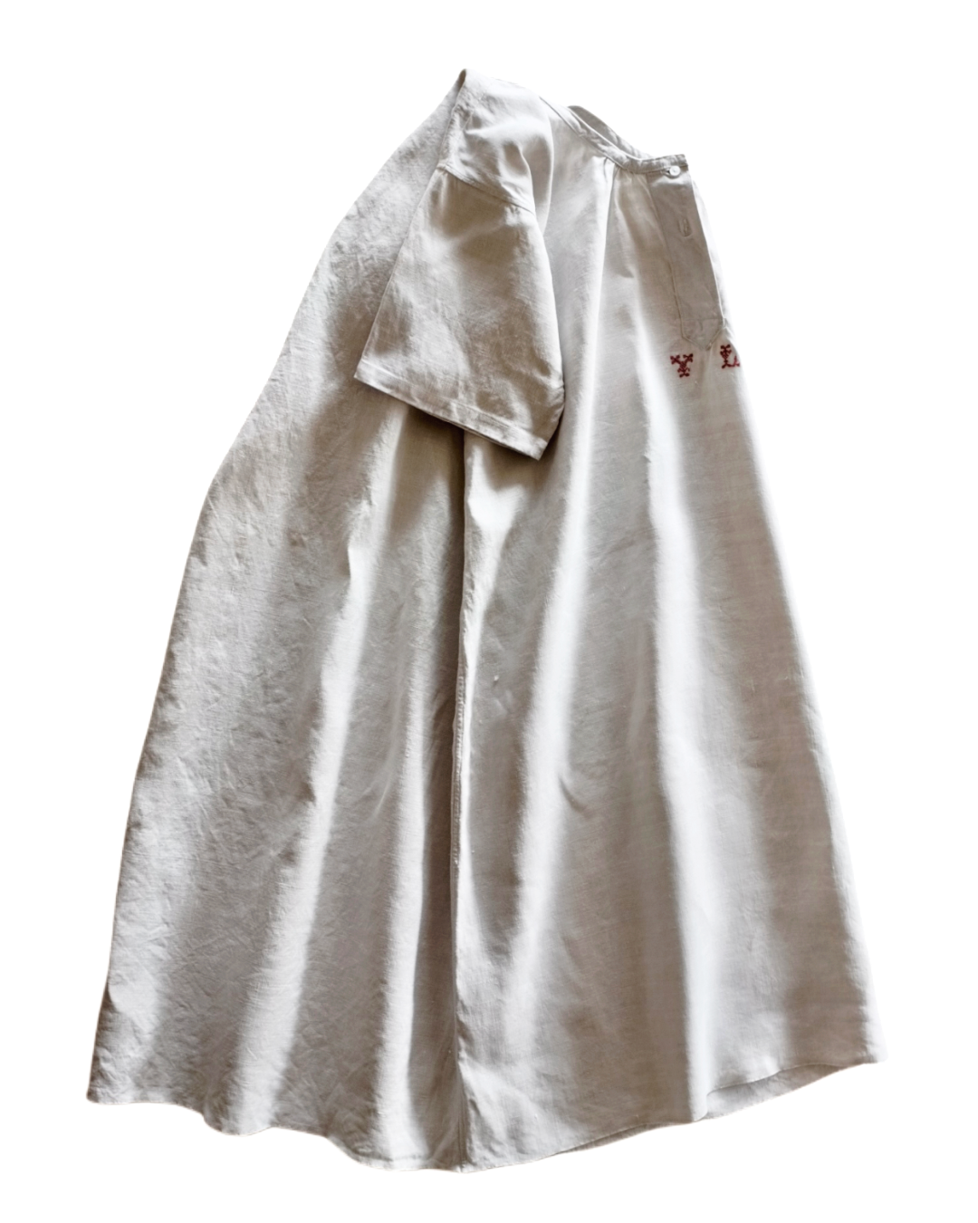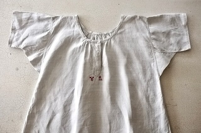 フランス 1900s 手織リネン 装飾的モノグラムと緩やかなワンピースa アンティーク