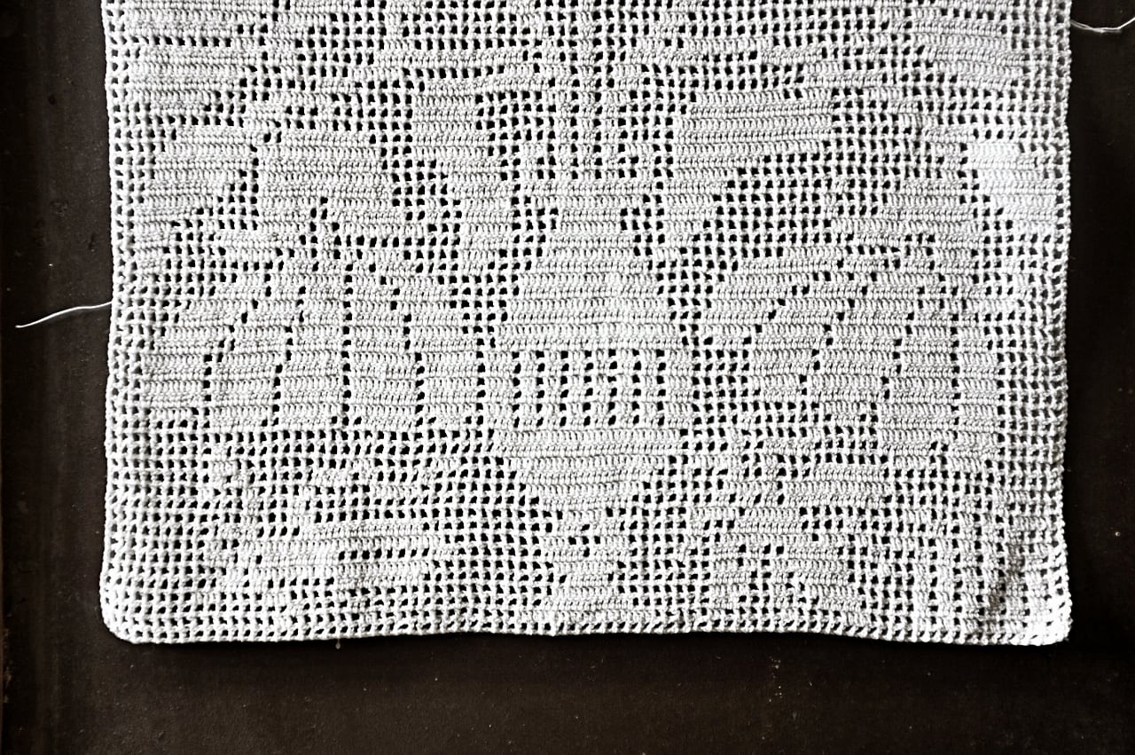 少々厚手のリネンドイリー、またはテーブルセンター。