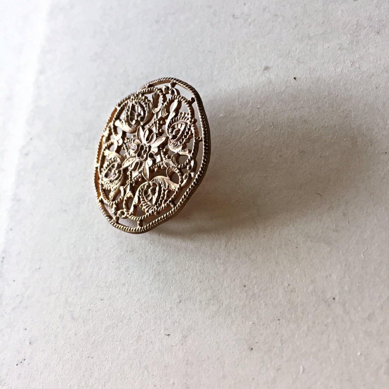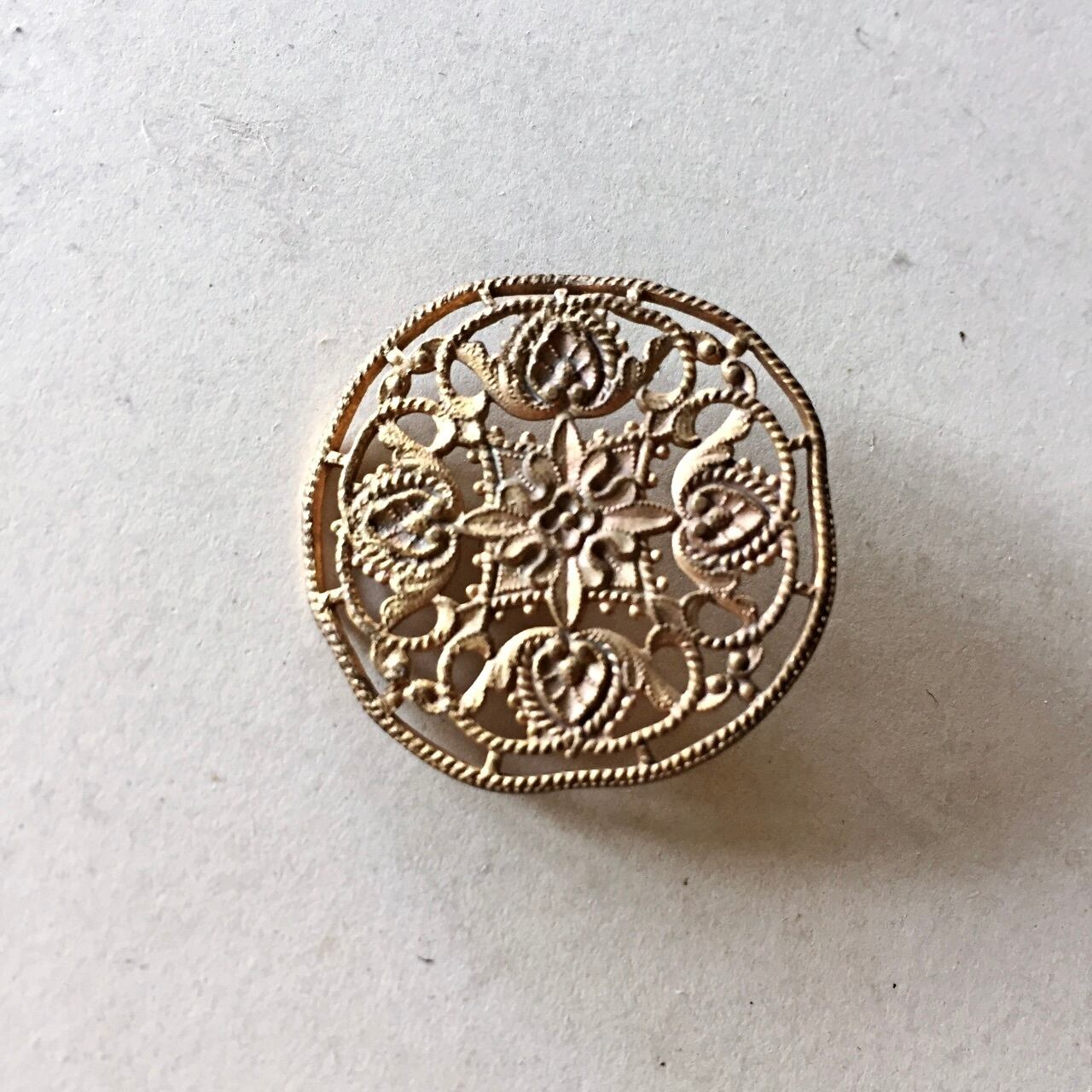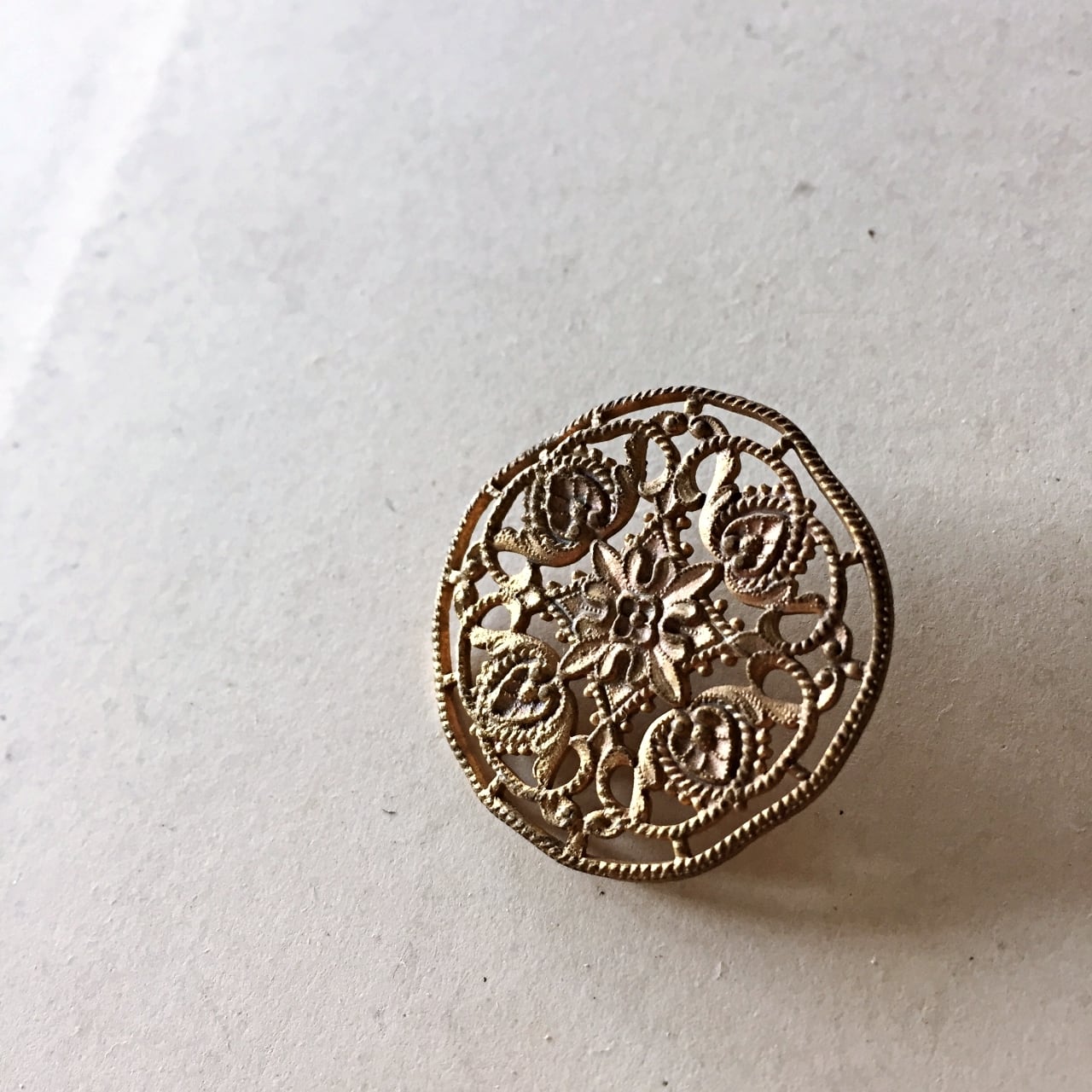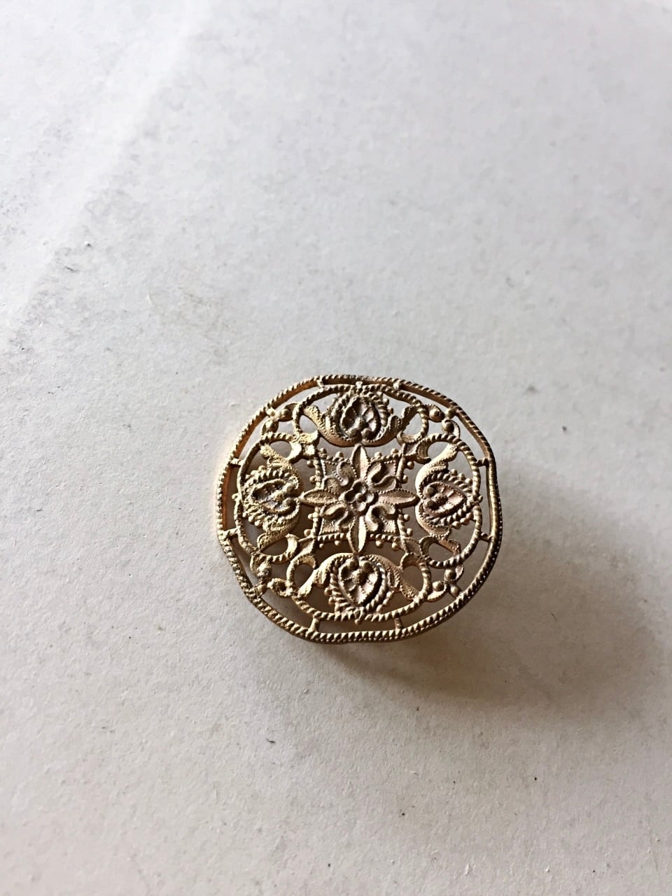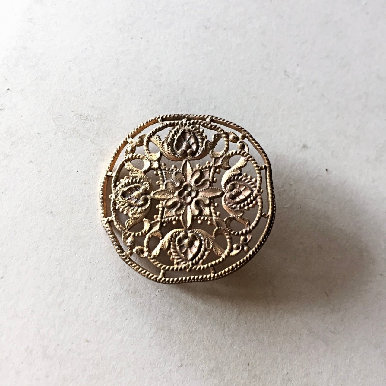 19世紀 フランス 2.6c 金の蘭と心臓型の葉と透かし彫りメタルボタン アンティーク