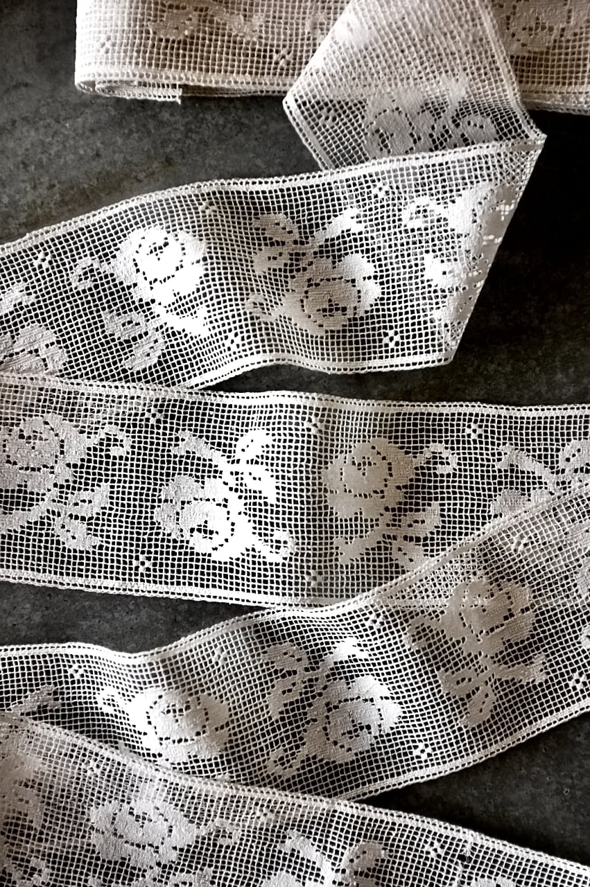 フランス 1900s 古薔薇たちのフィレレース 100x9c アンティーク r48mn