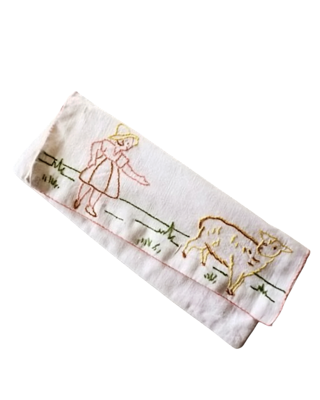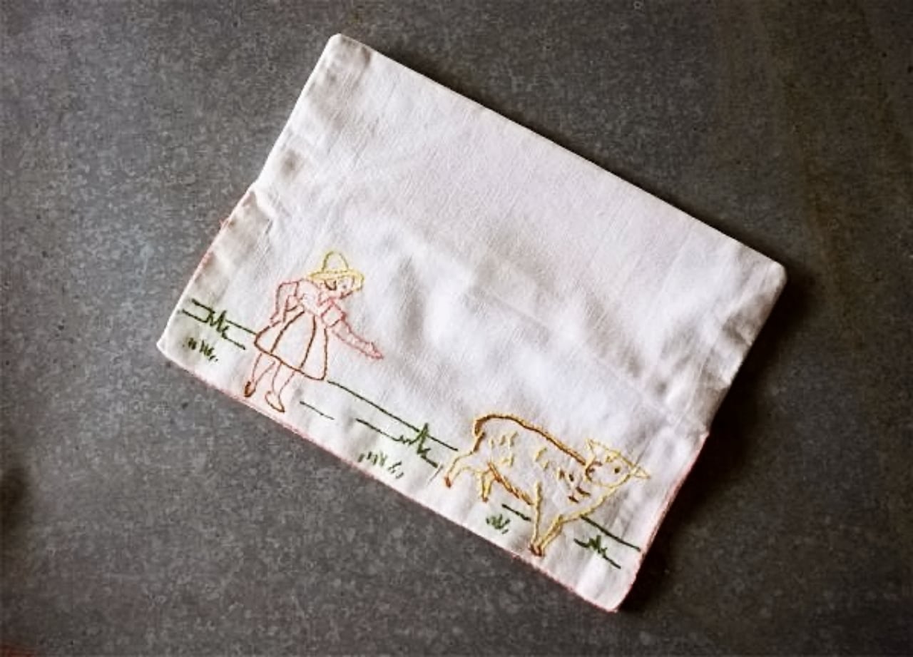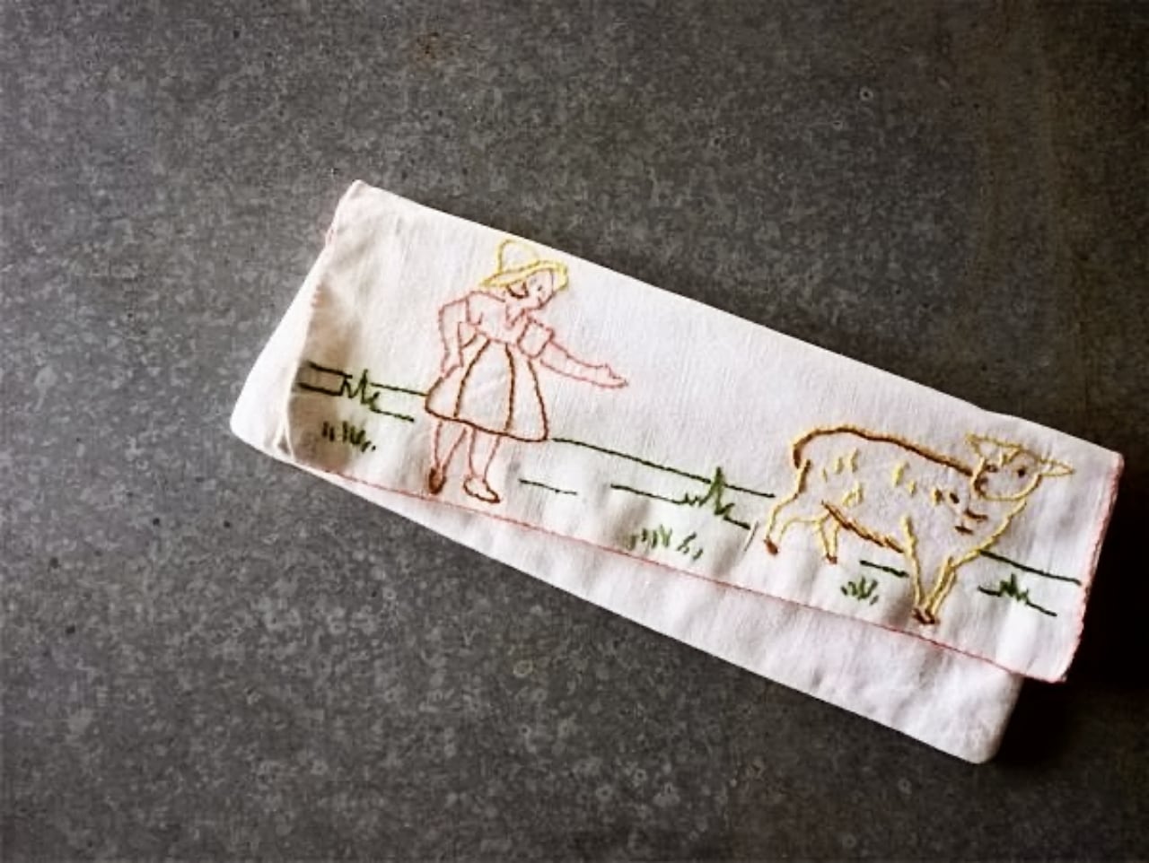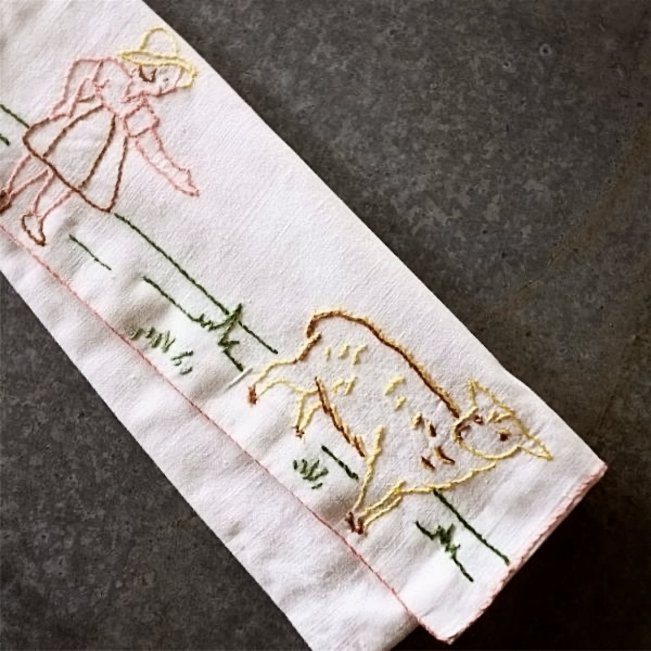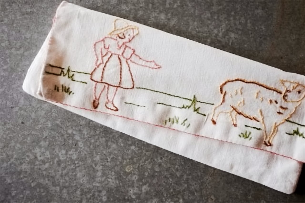 手刺繍された牧歌的情景....