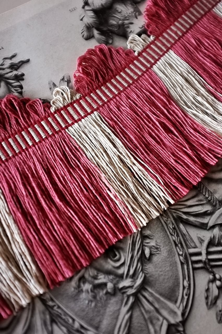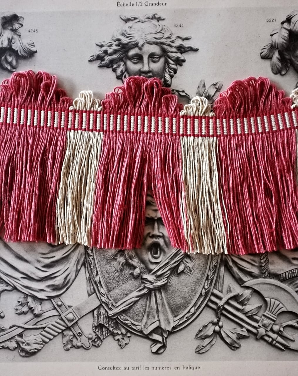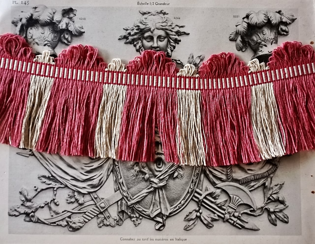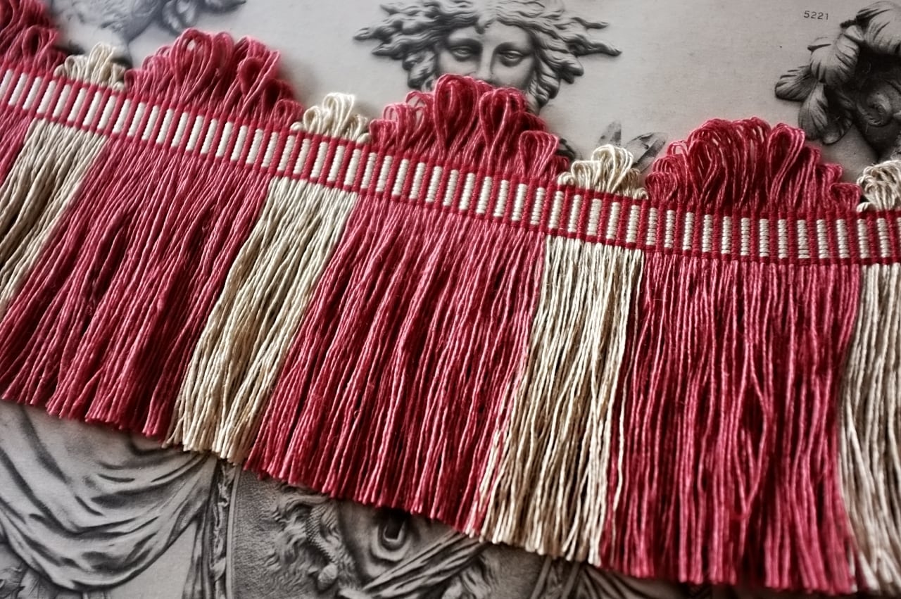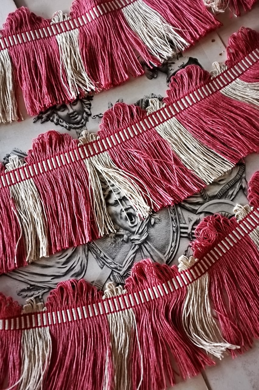 フランス 50x11c リネン 薄曇りの木苺とフリンジブレード ヴィンテージ