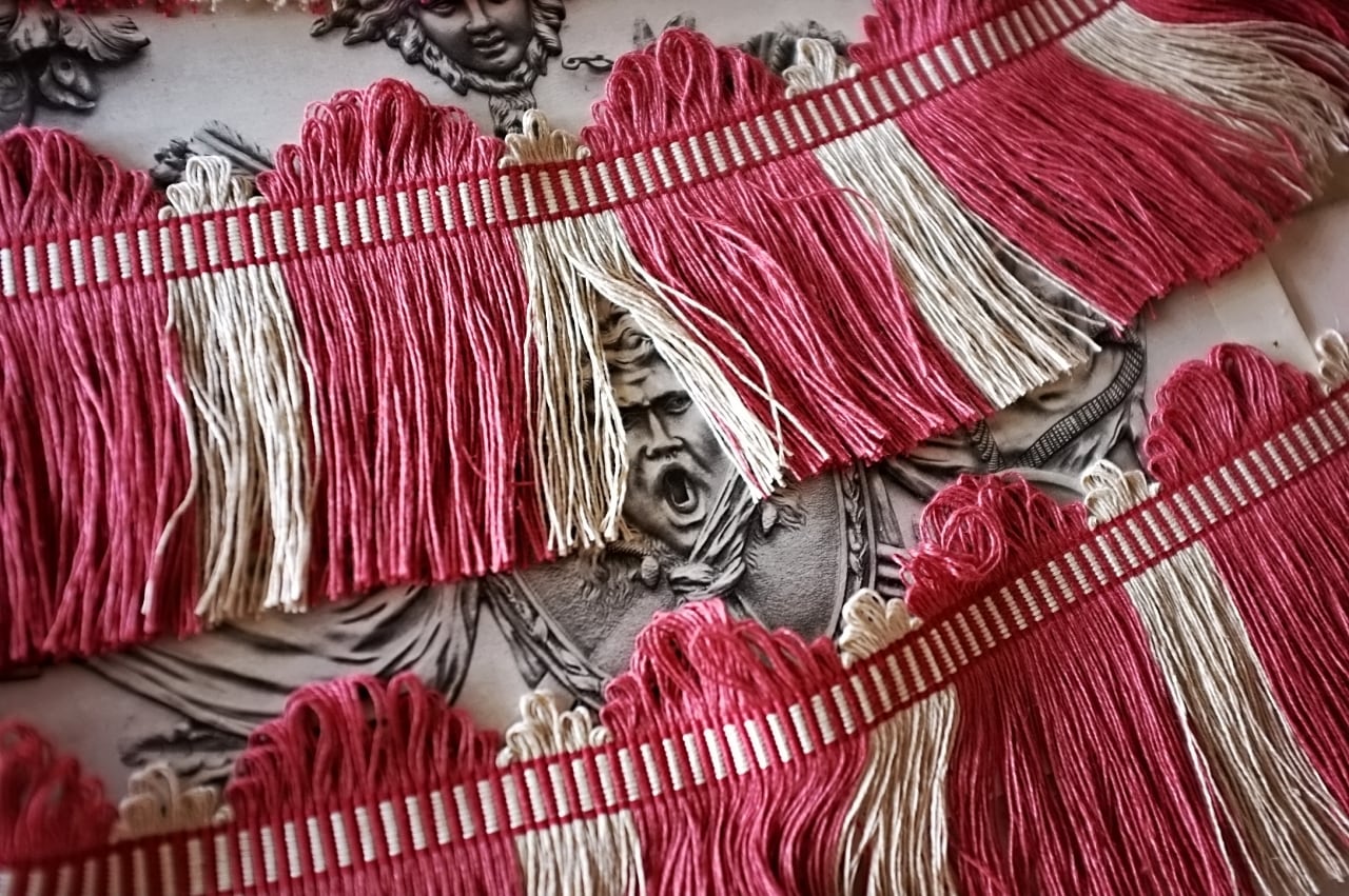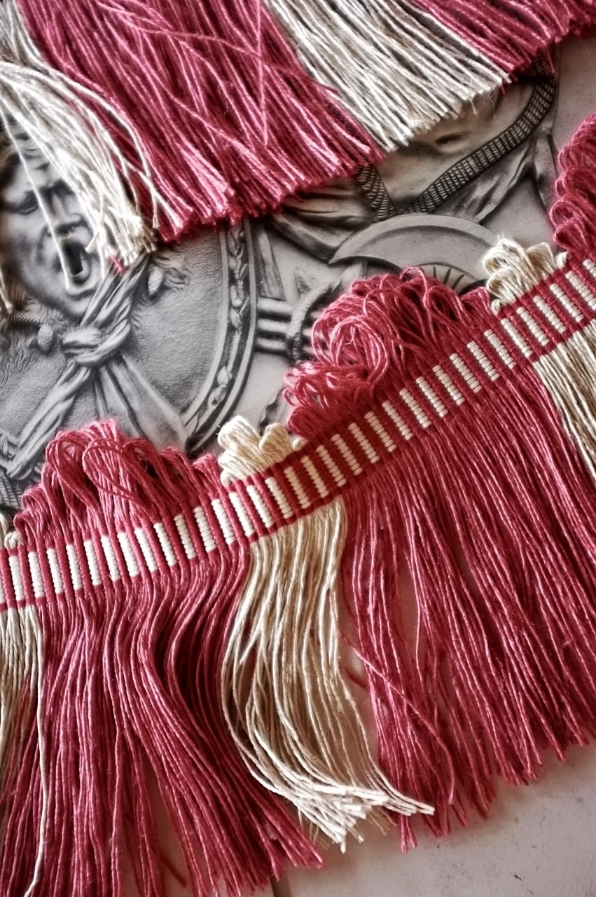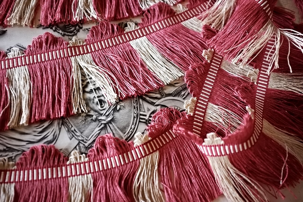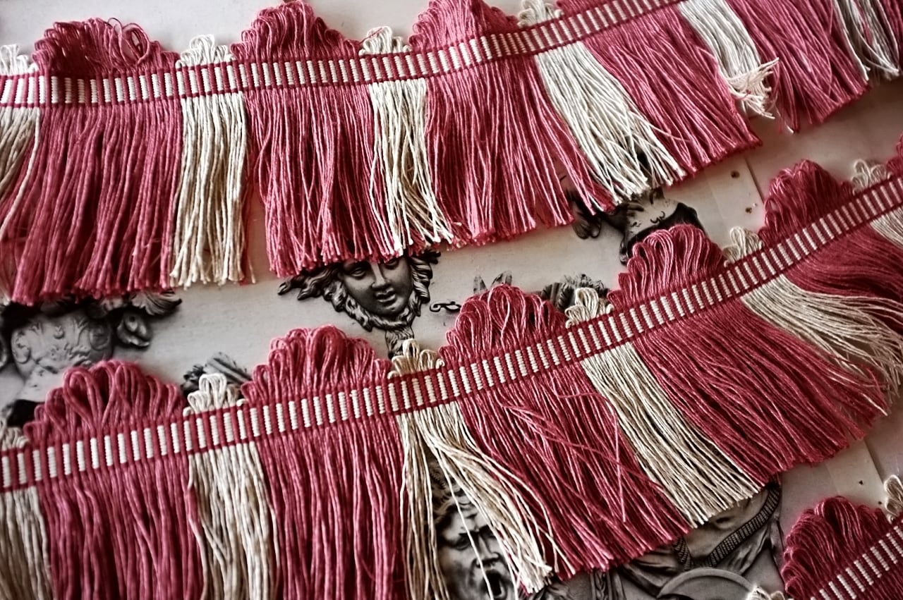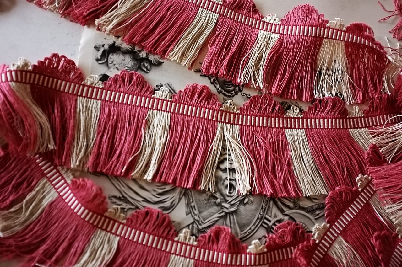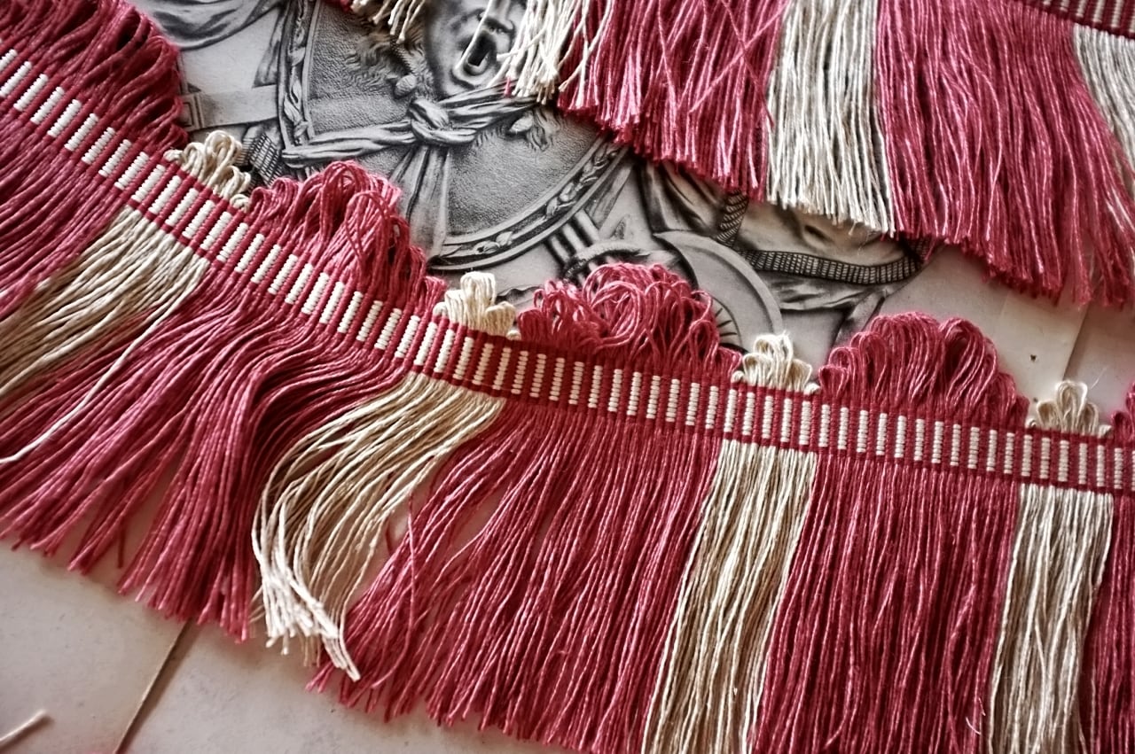 フランス 50x11c リネン 薄曇りの木苺とフリンジブレード ヴィンテージ