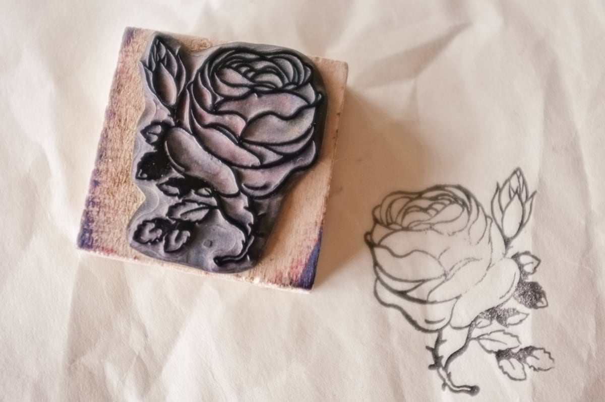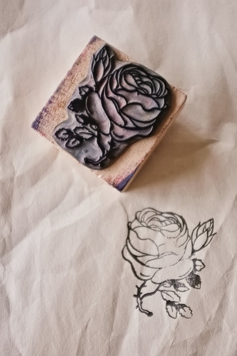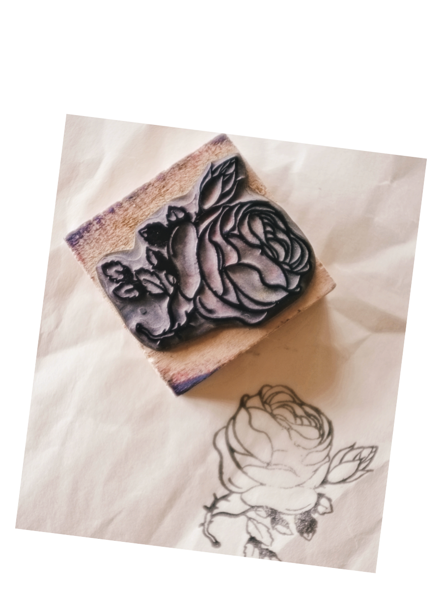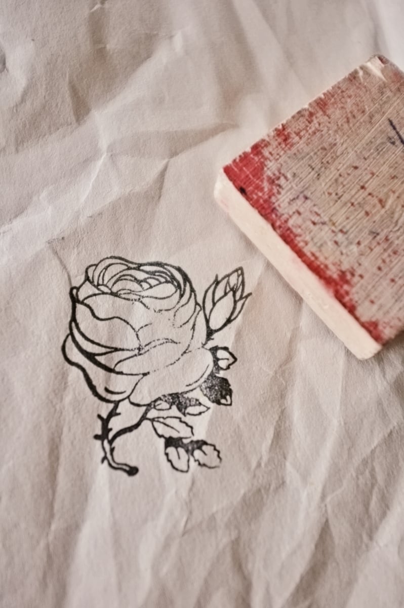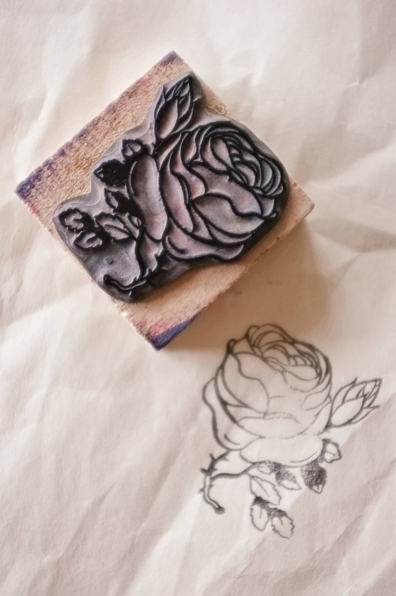 フランス 5.2c 平面のキャベジローズとメランコリーな木製スタンプ ヴィンテージ