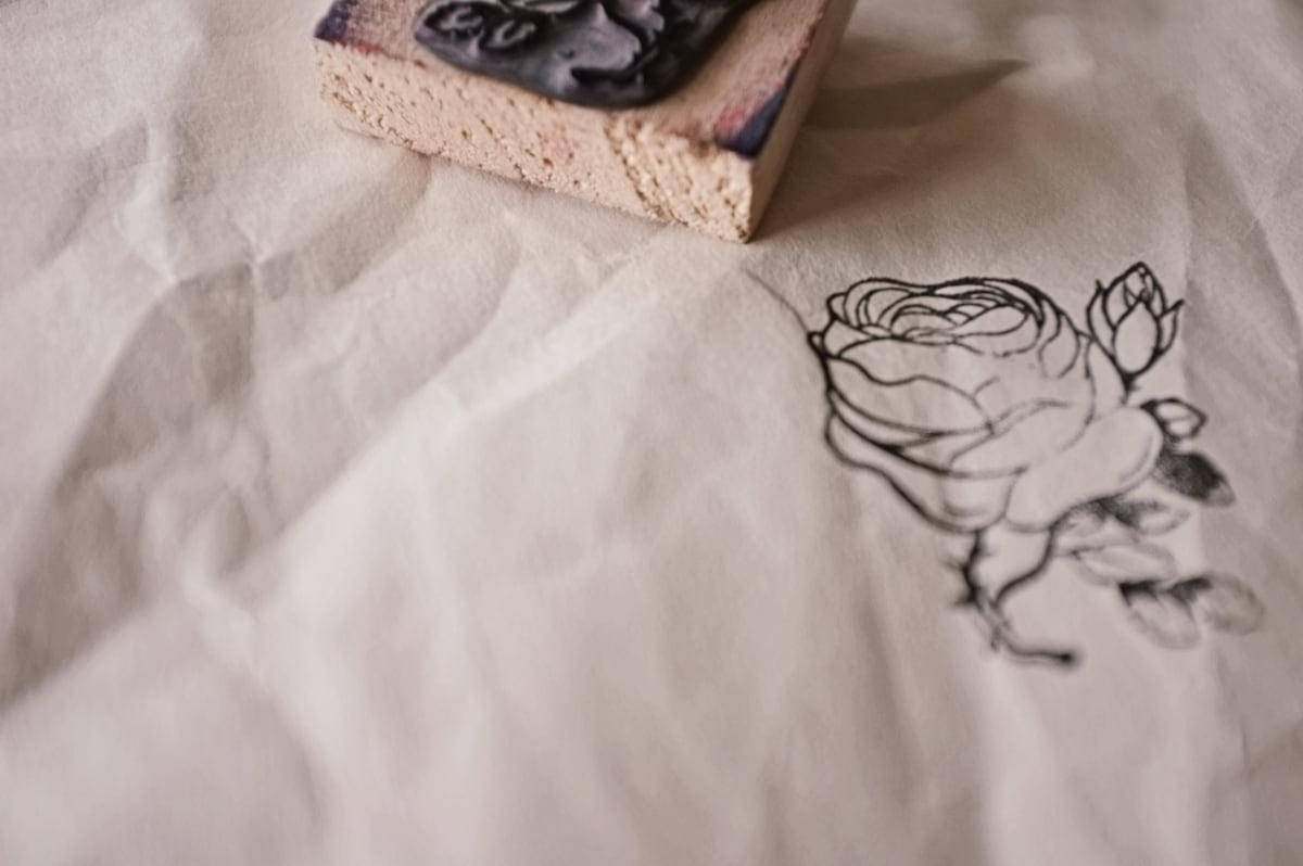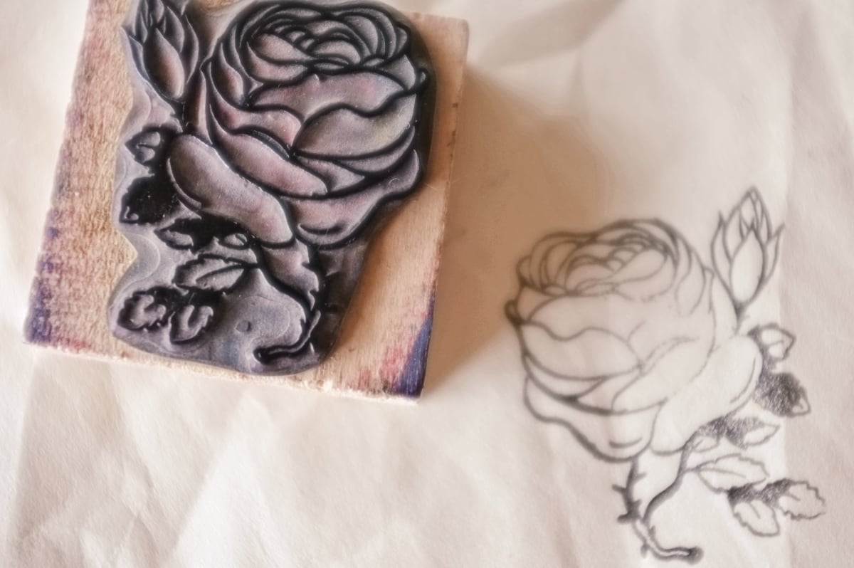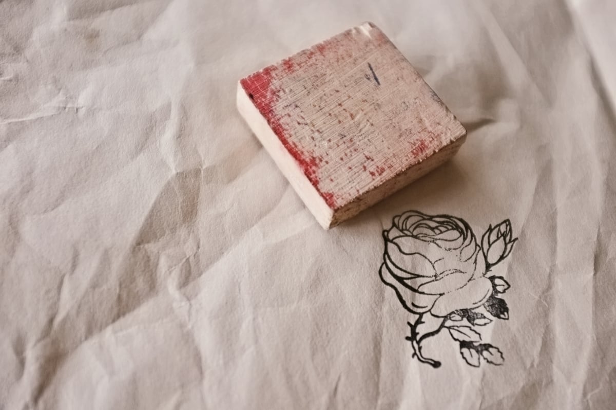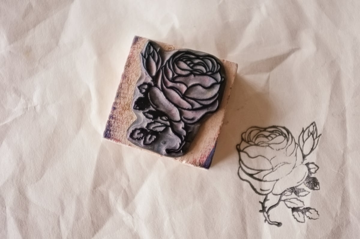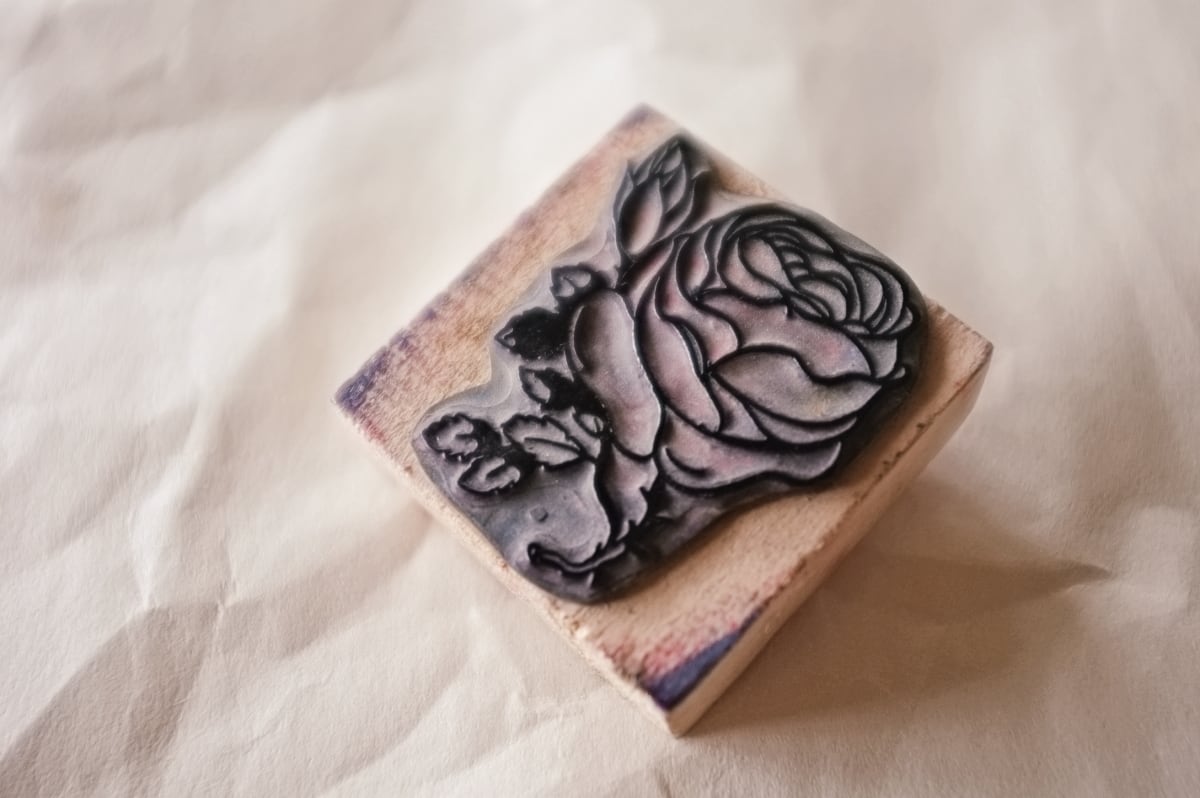 フランス 5.2c 平面のキャベジローズとメランコリーな木製スタンプ ヴィンテージ