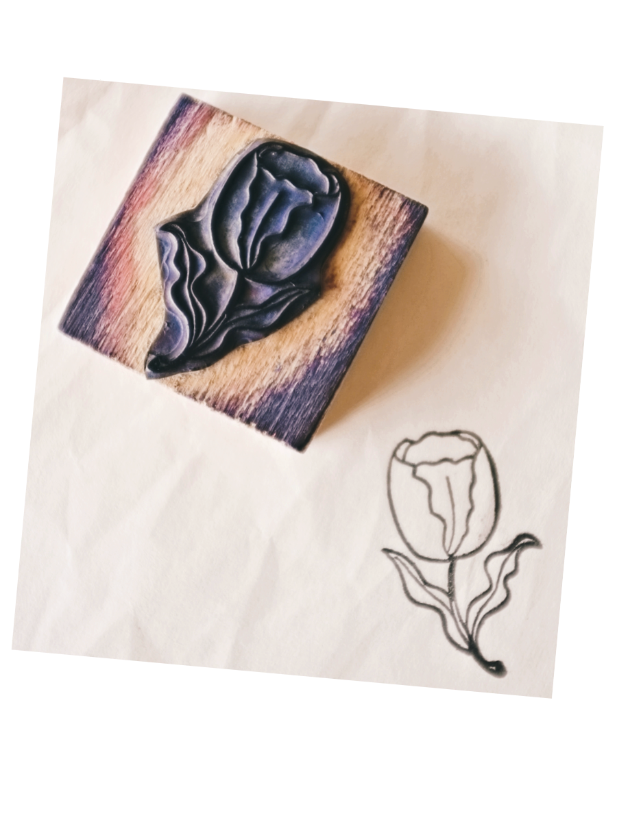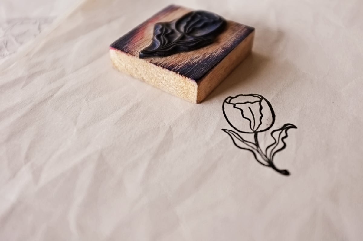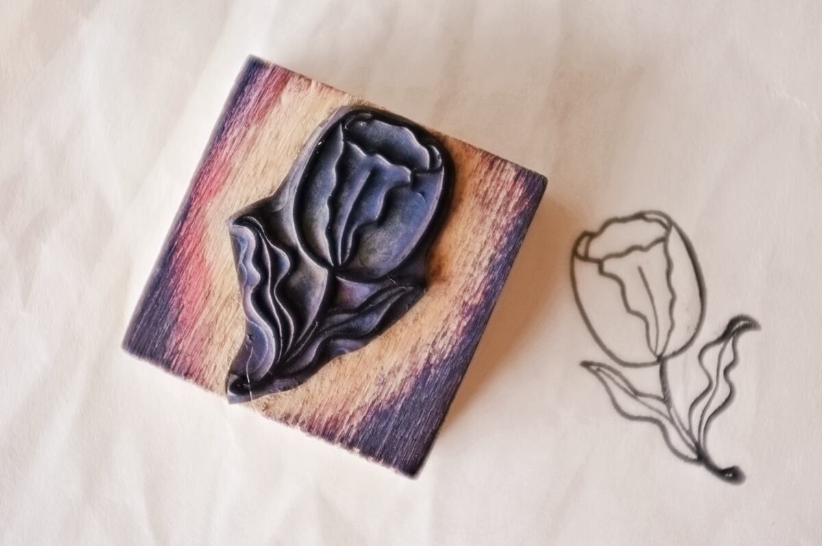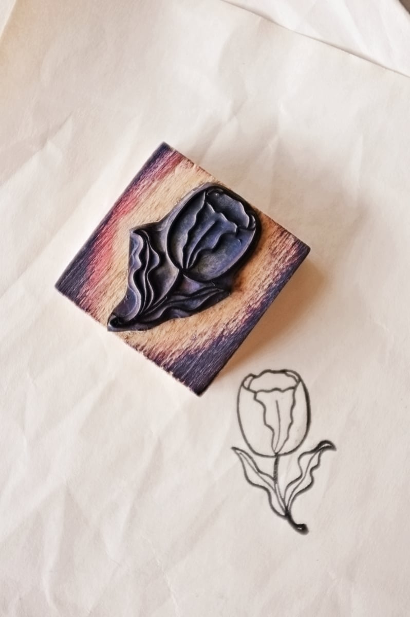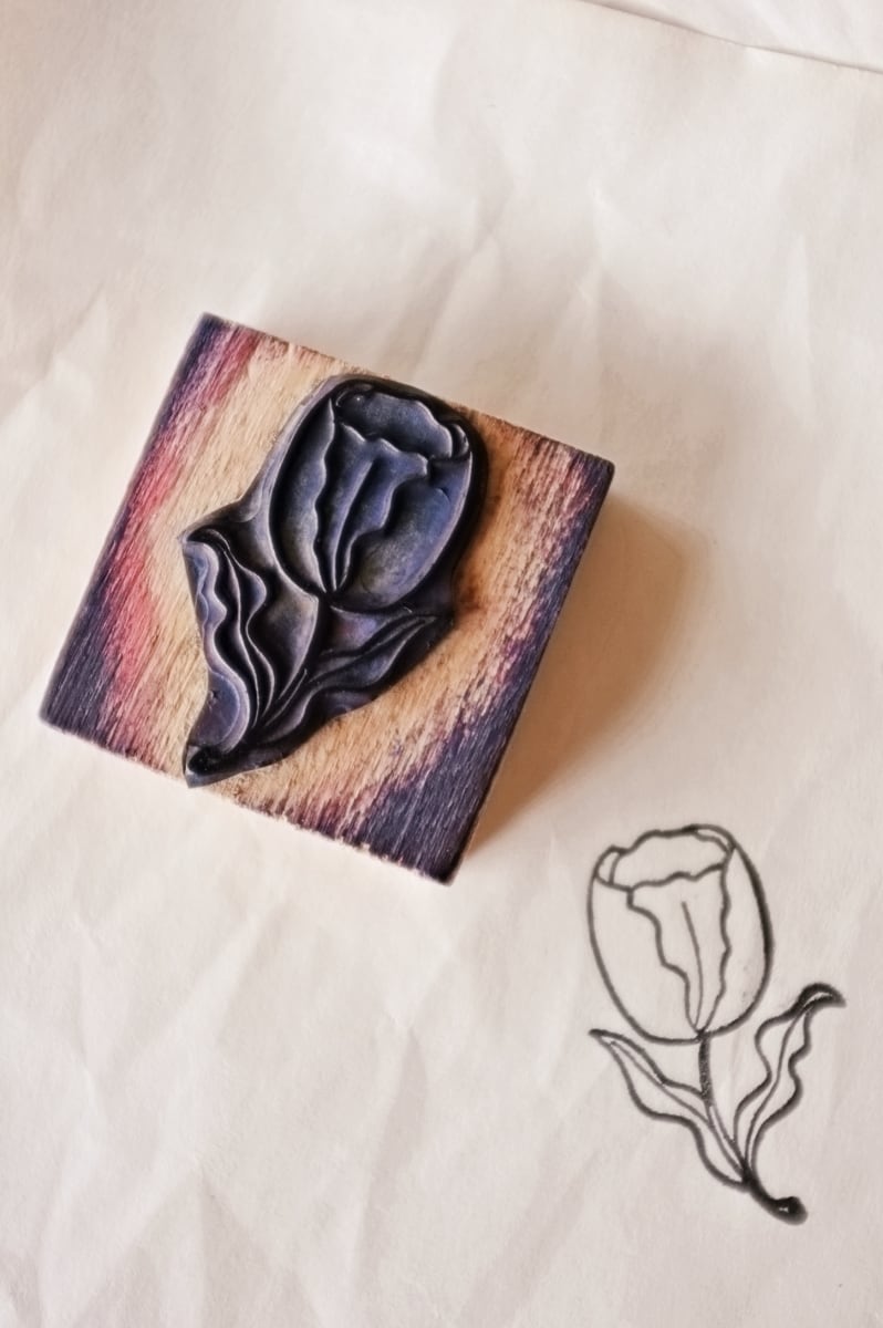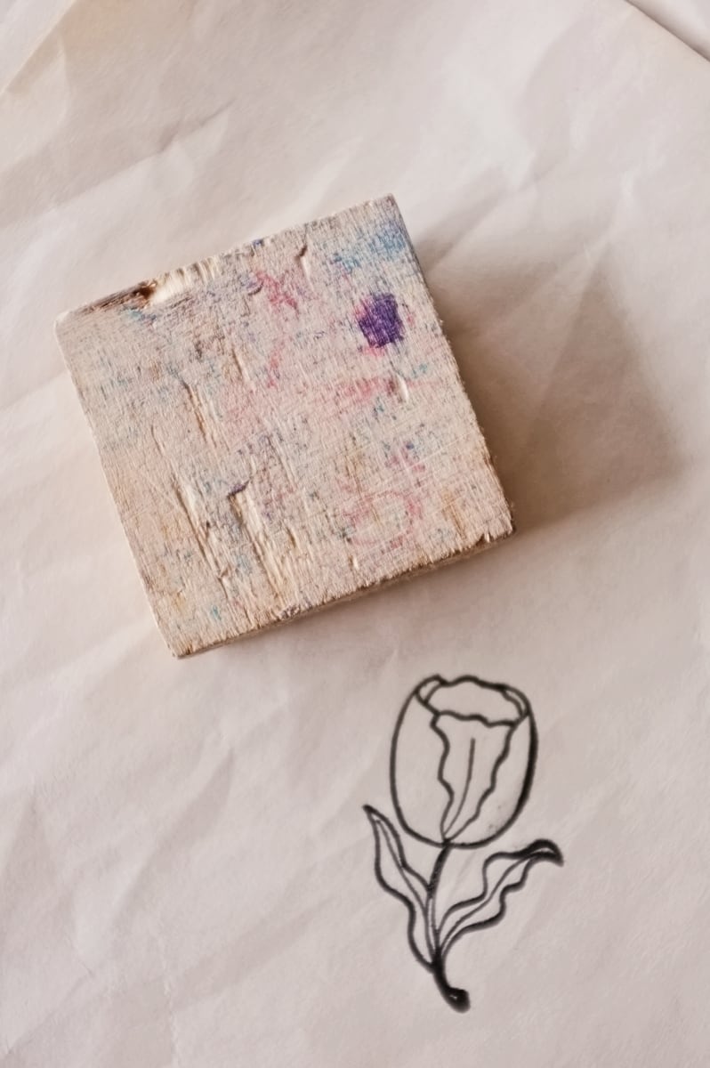 フランス 5.3c やさしいチューリップとメランコリーな木製スタンプ ヴィンテージ