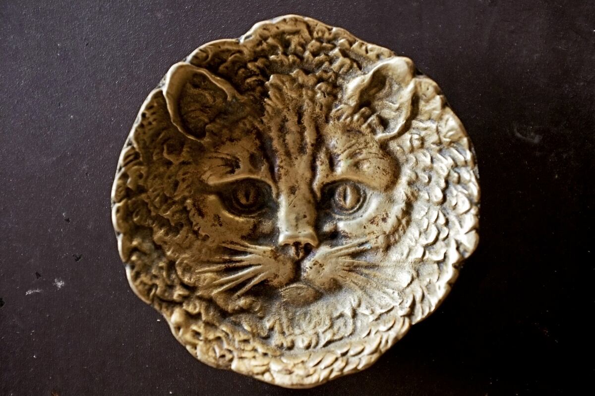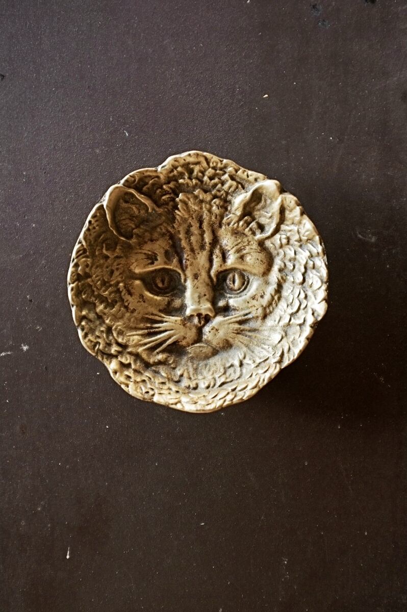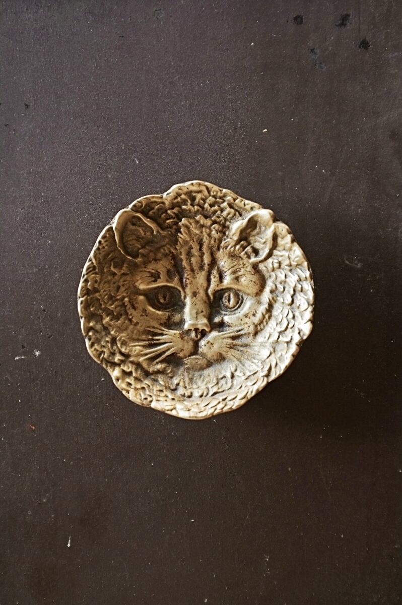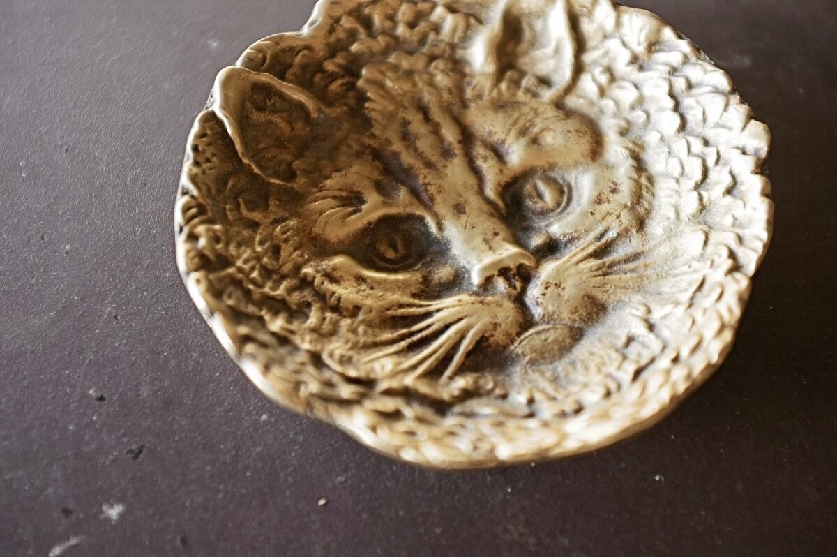 フランス ヒポコンデリー気質の尨猫とトレイ ブロンズ アンティーク