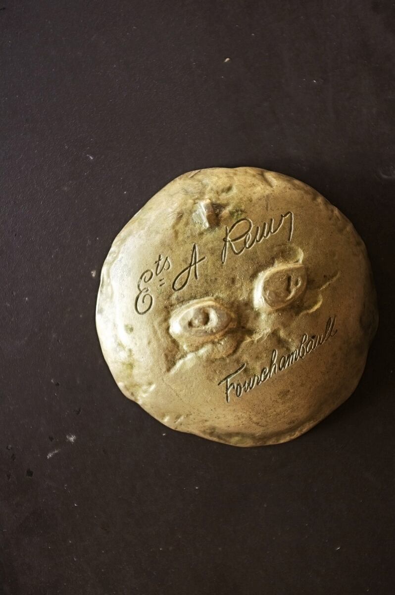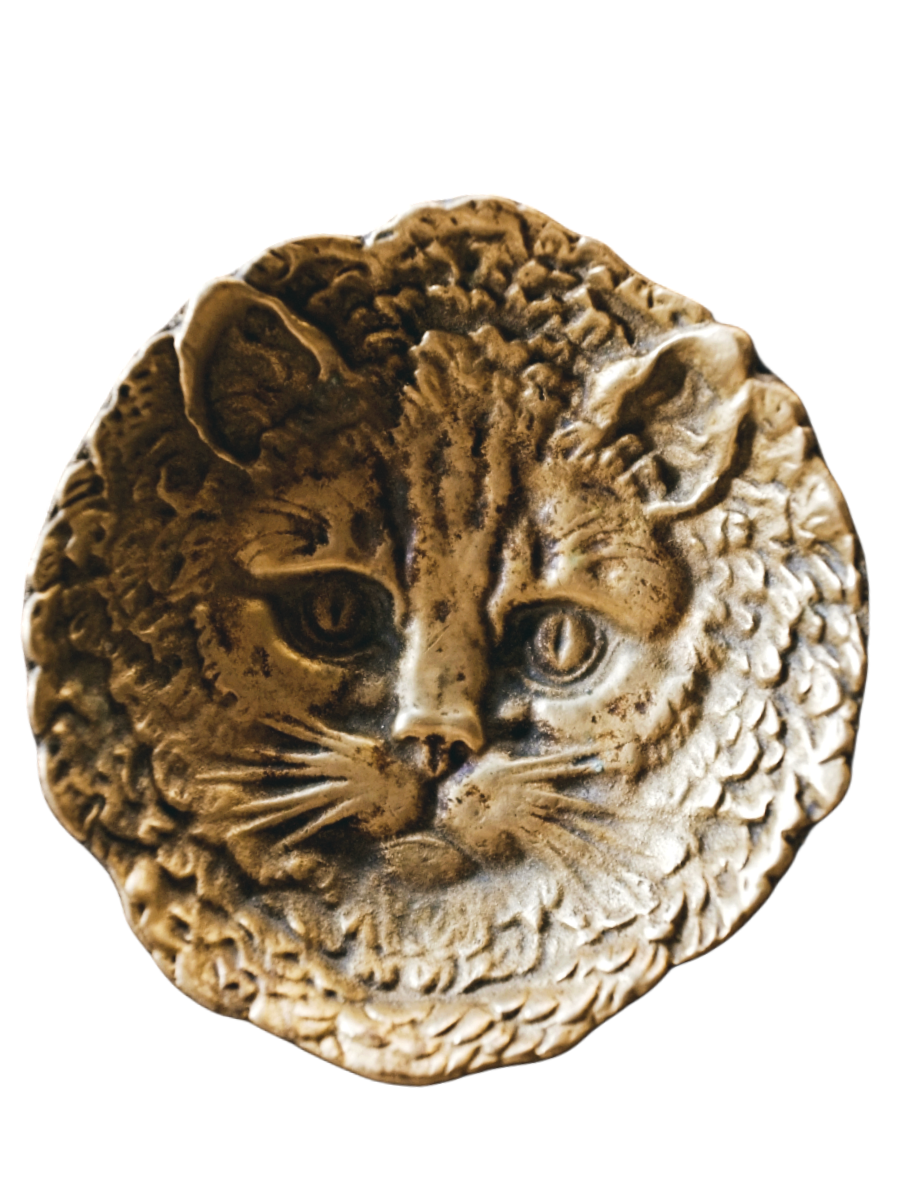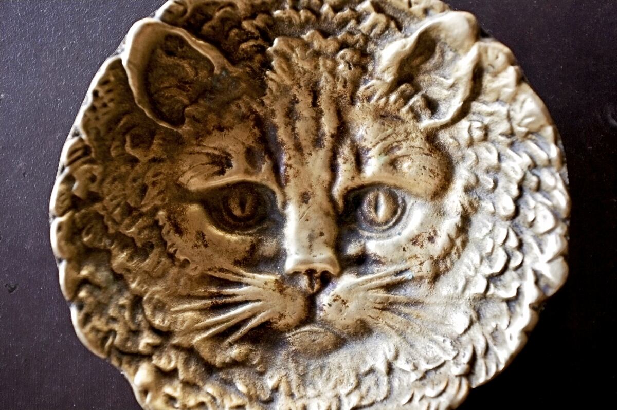 フランス ヒポコンデリー気質の尨猫とトレイ ブロンズ アンティーク