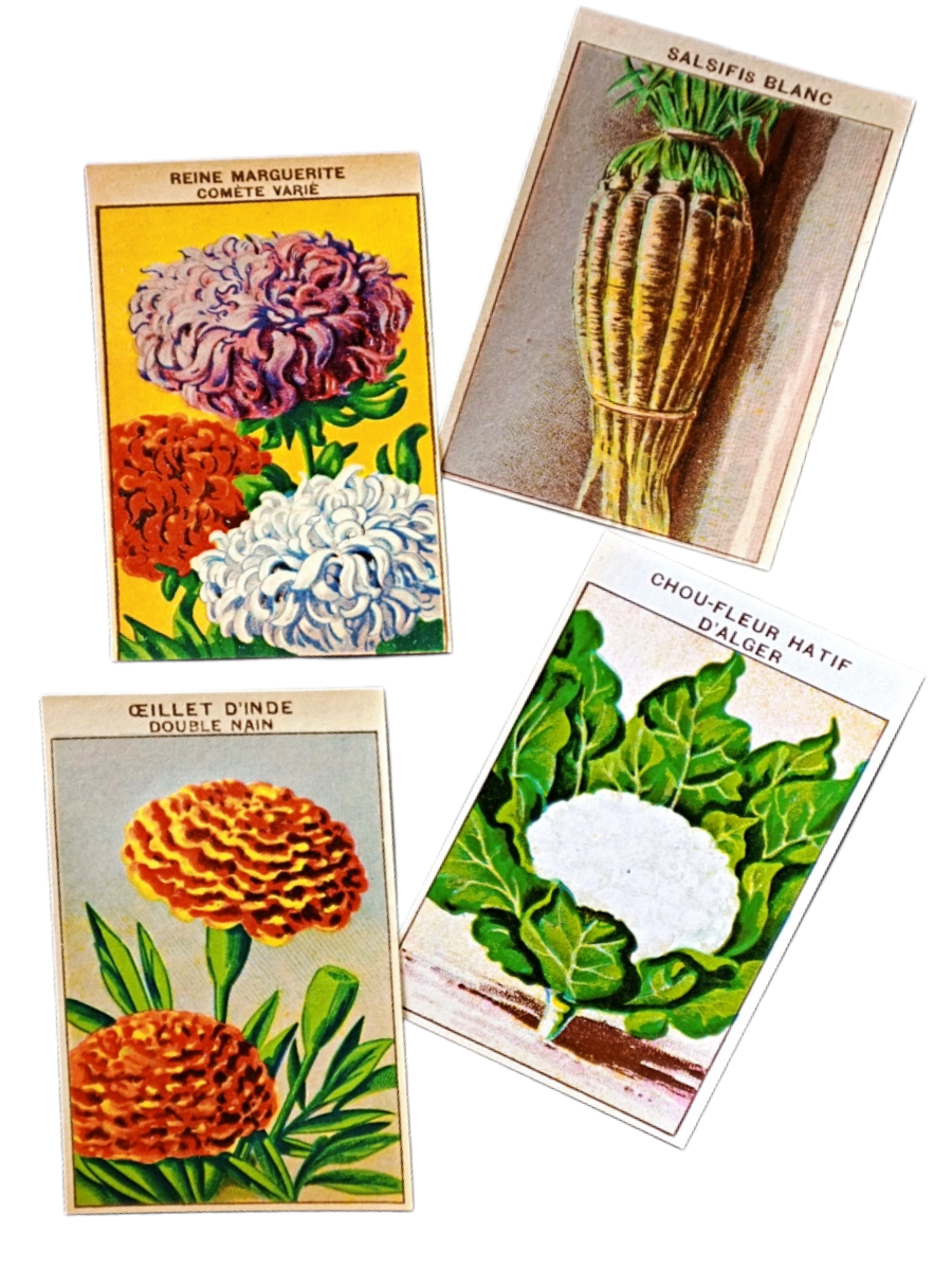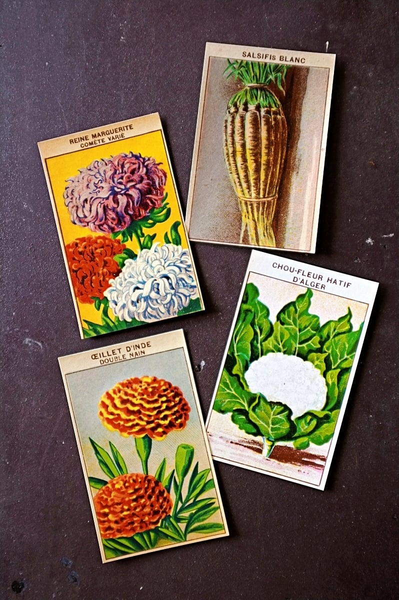 20s フランス 4set 膨満な花々と野菜たち 種子袋用ラベルb アンティーク
