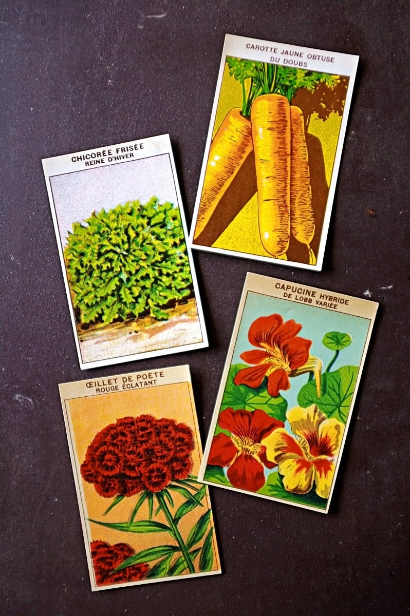 20s フランス 4set 膨満な花々と野菜たち 種子袋用ラベルe アンティーク