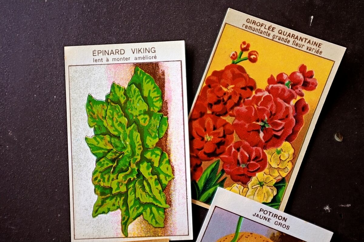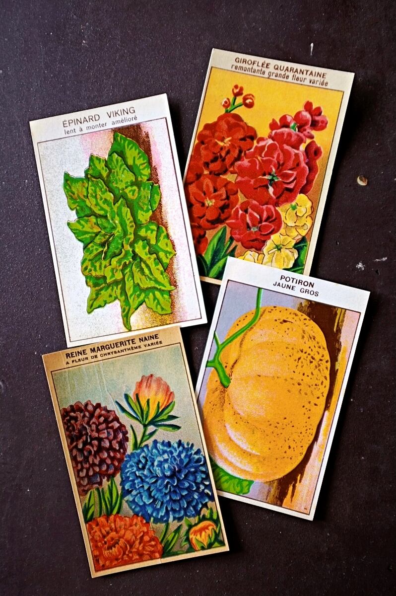 20s フランス 4set 膨満な花々と野菜たち 種子袋用ラベルp アンティーク