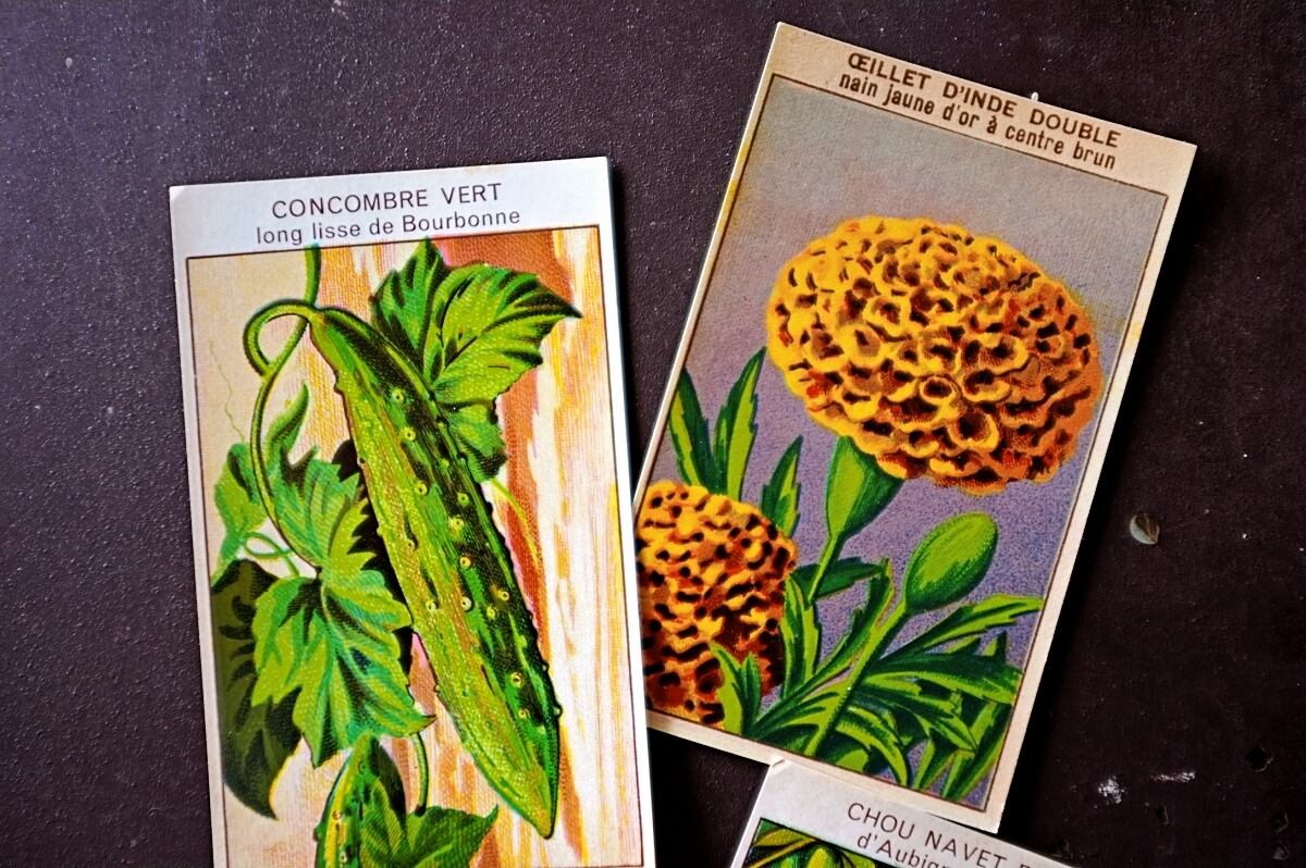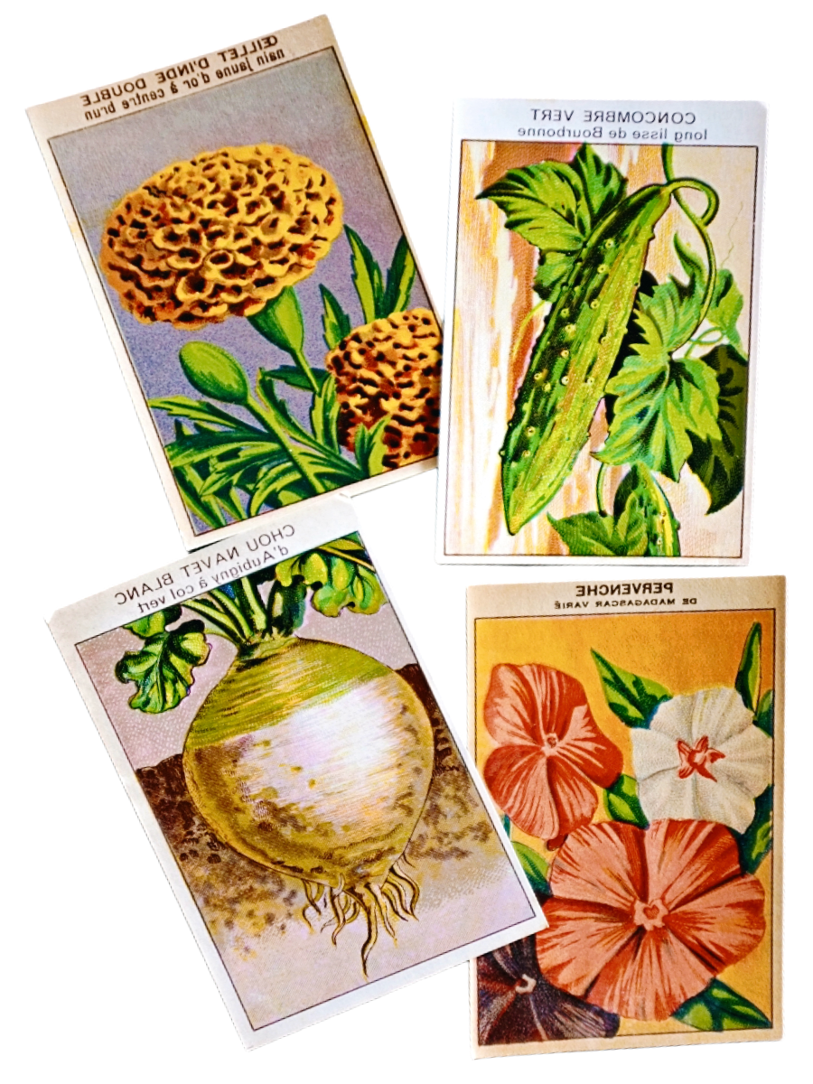 20s フランス 4set 膨満な花々と野菜たち 種子袋用ラベルq アンティーク