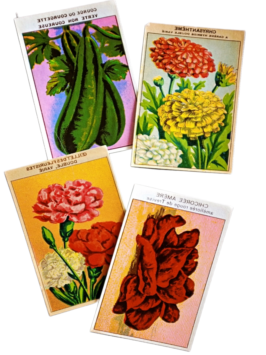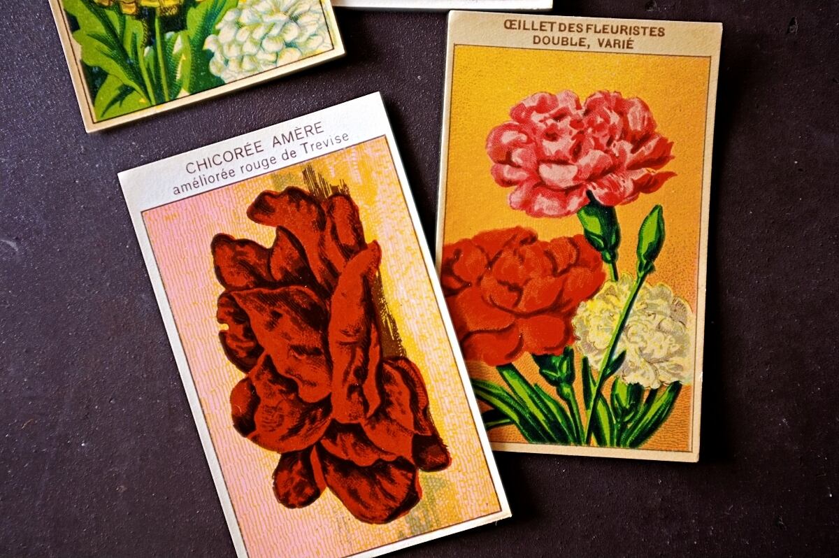20s フランス 4set 膨満な花々と野菜たち 種子袋用ラベルt アンティーク