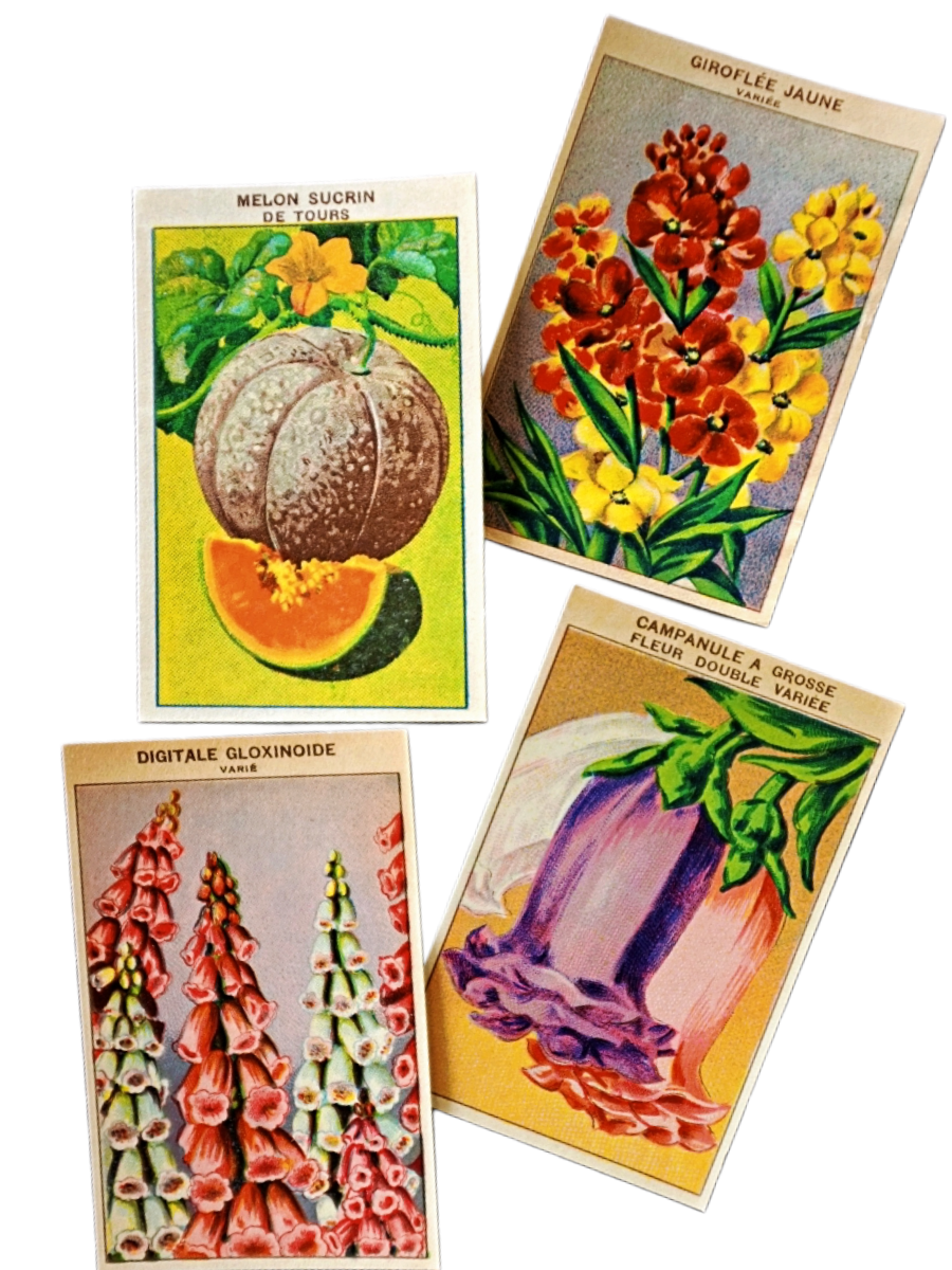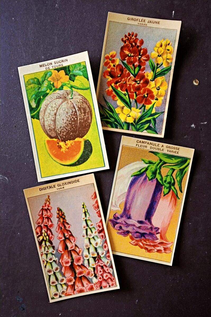 20s フランス 4set 膨満な花々と野菜たち 種子袋用ラベルy アンティーク