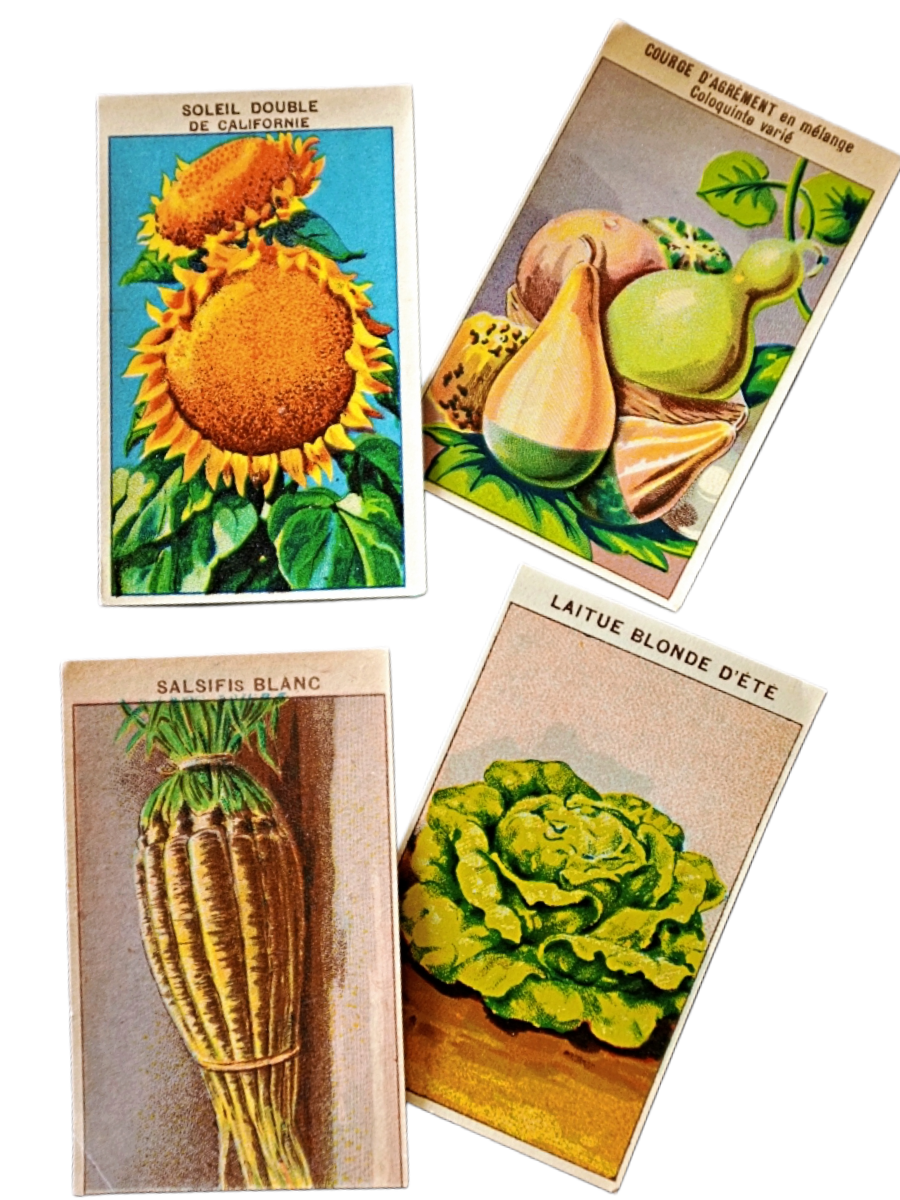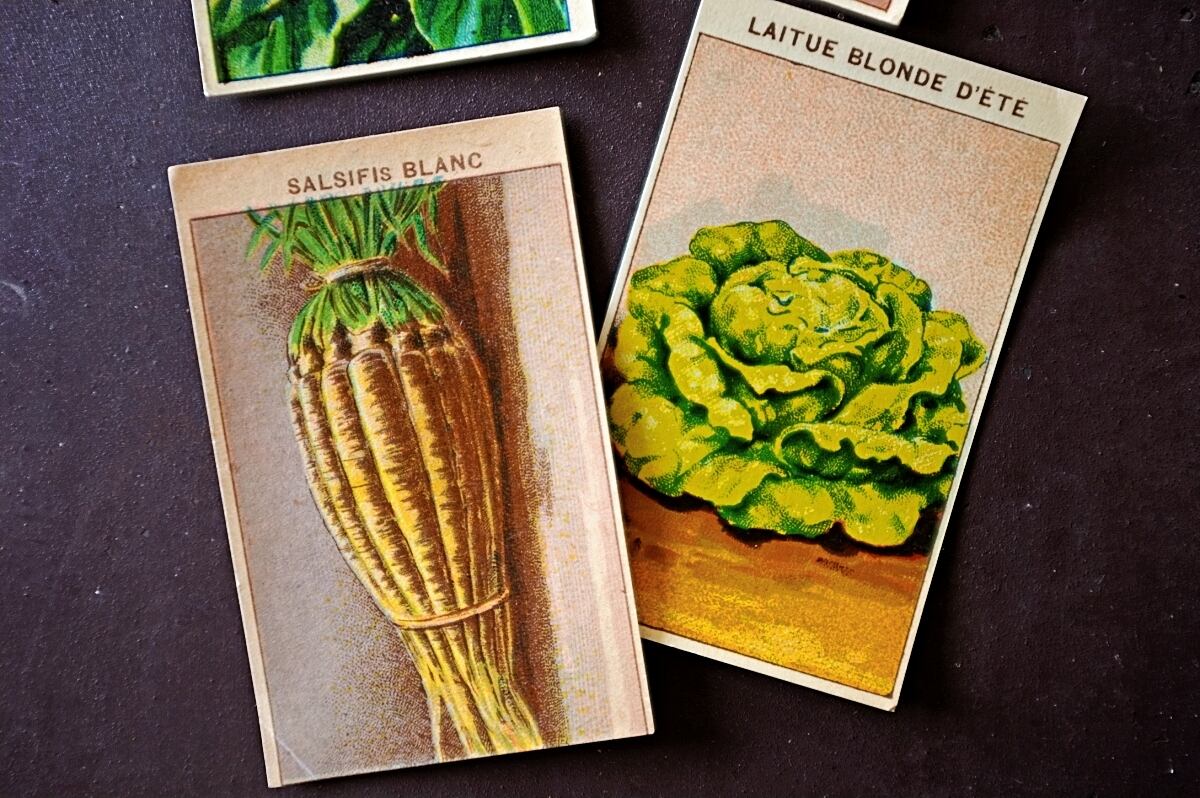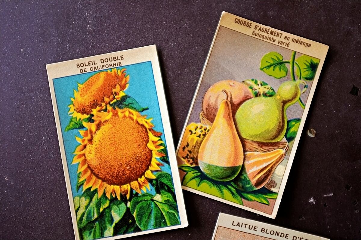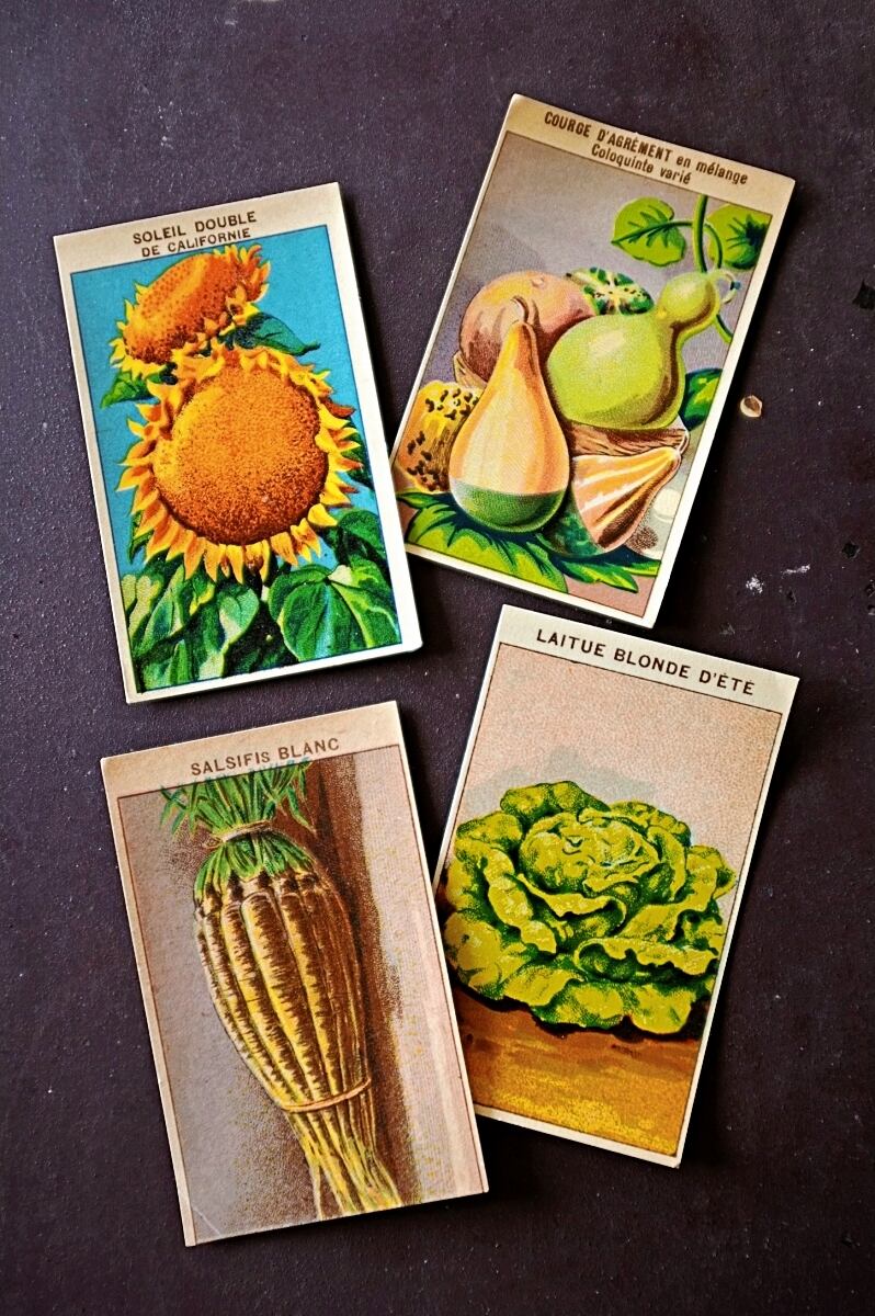 20s フランス 4set 膨満な花々と野菜たち 種子袋用ラベルj アンティーク
