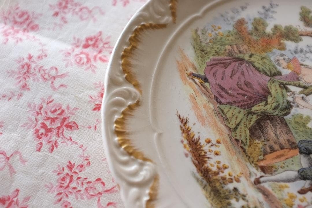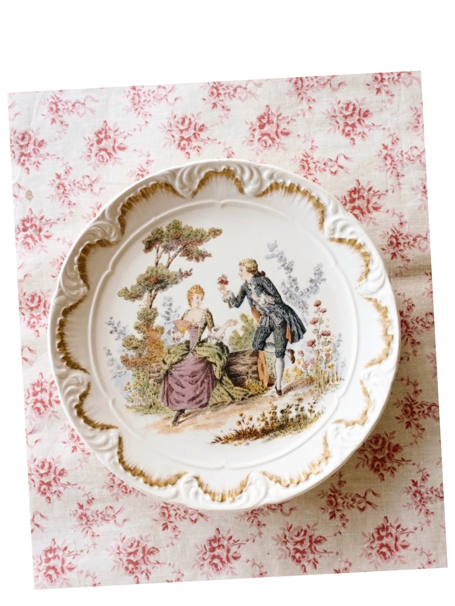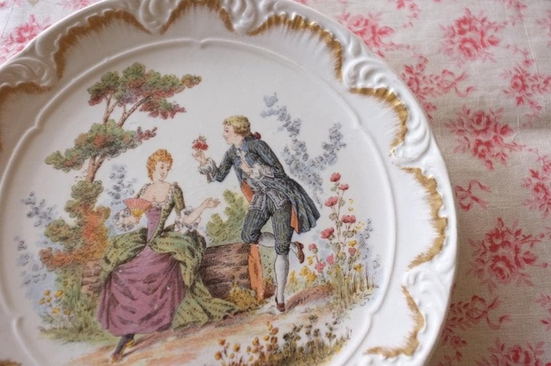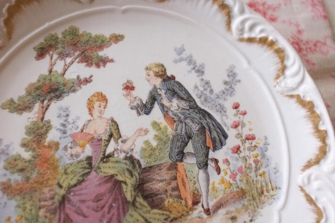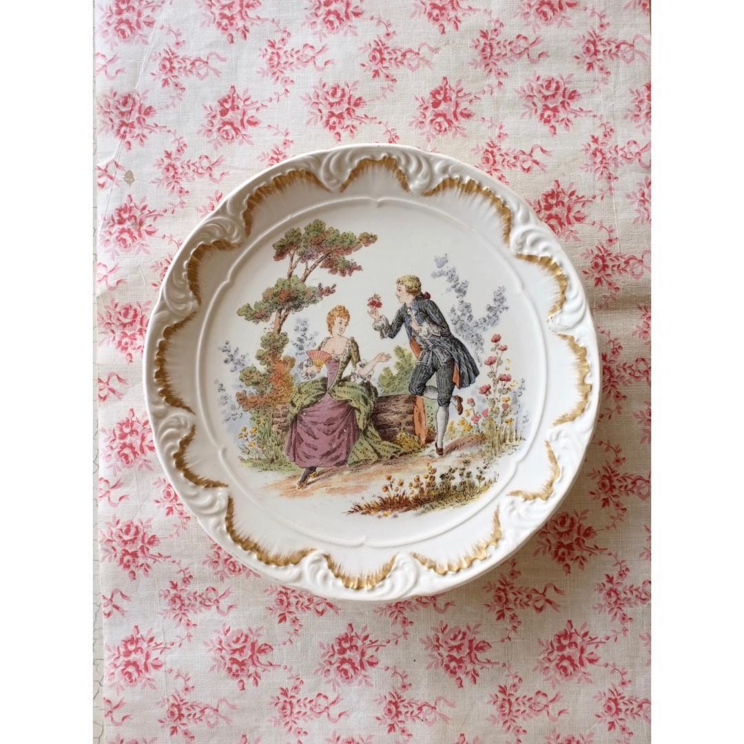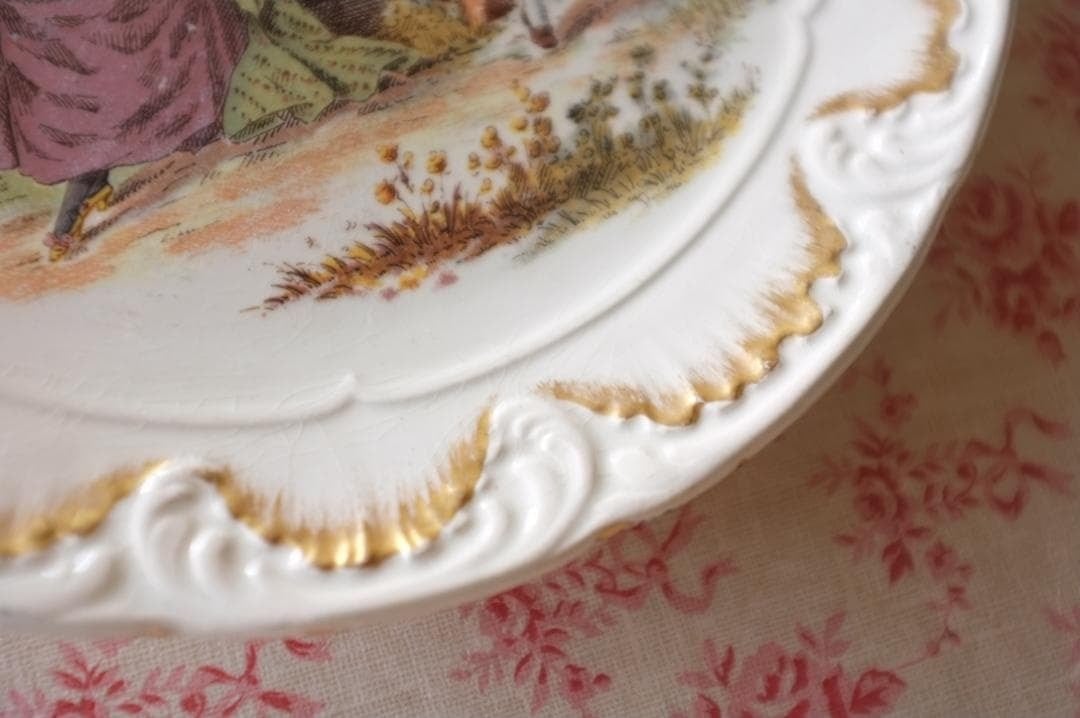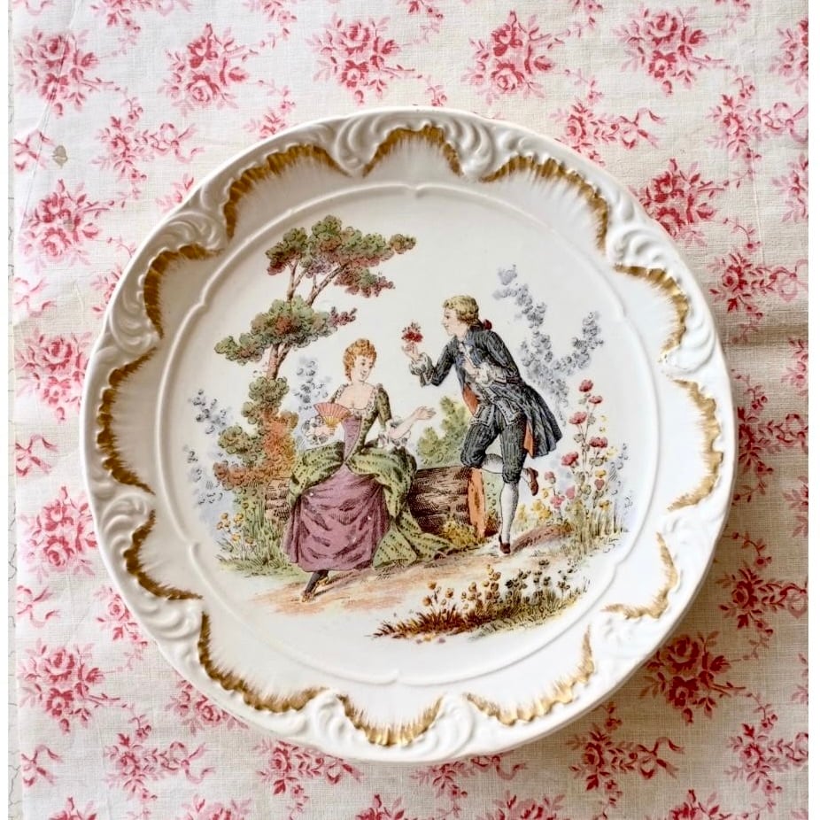19世紀 フランス Sarreguemines 侯爵と公爵夫人 プレートc アンティーク