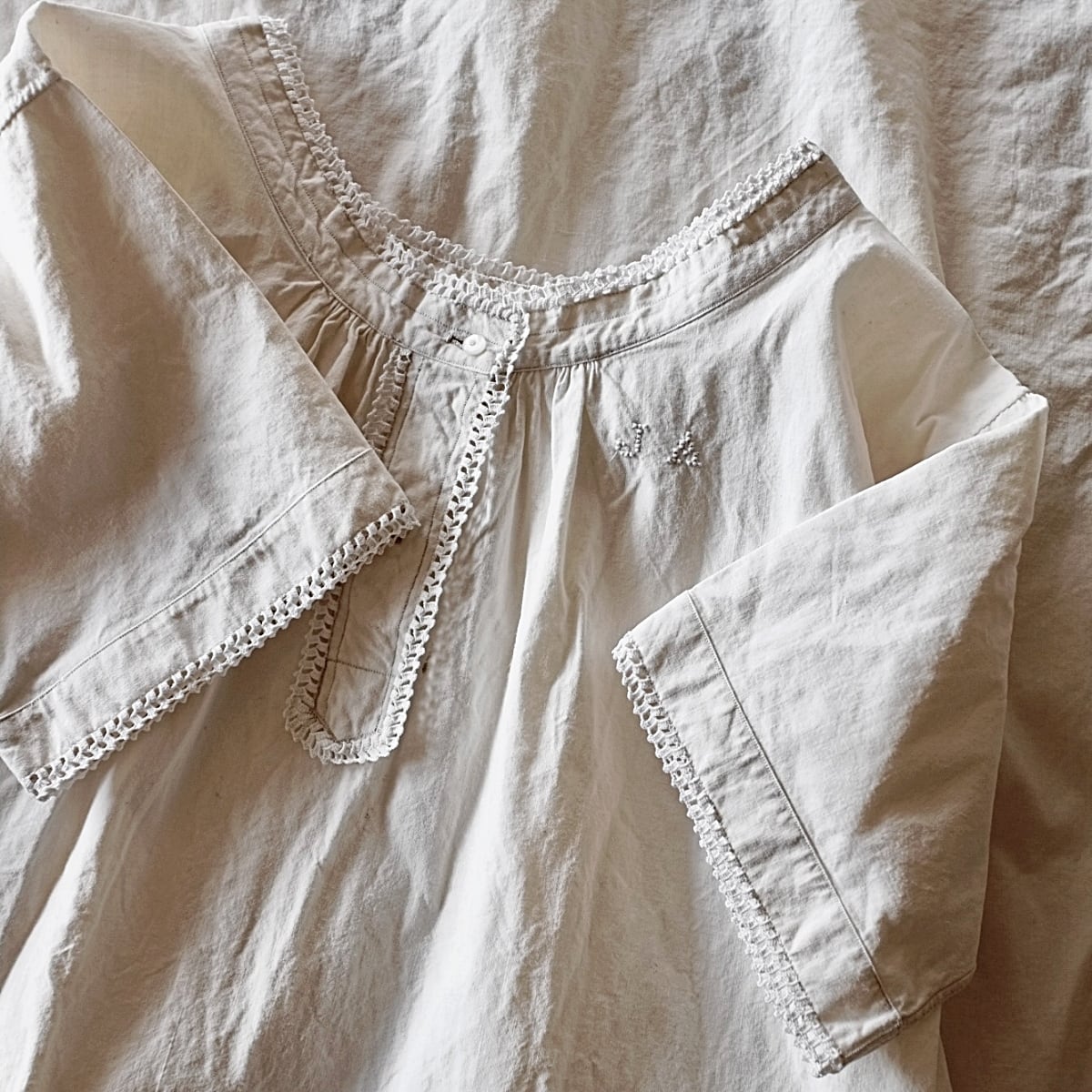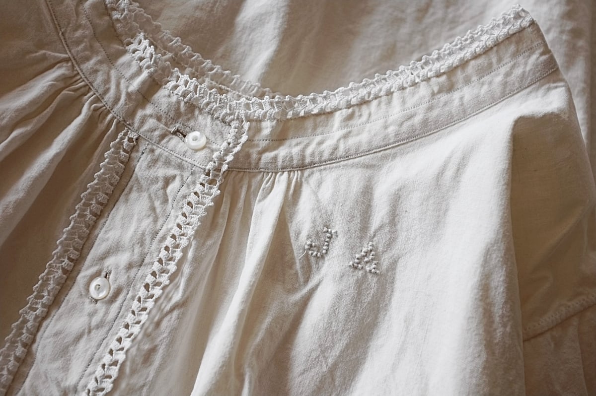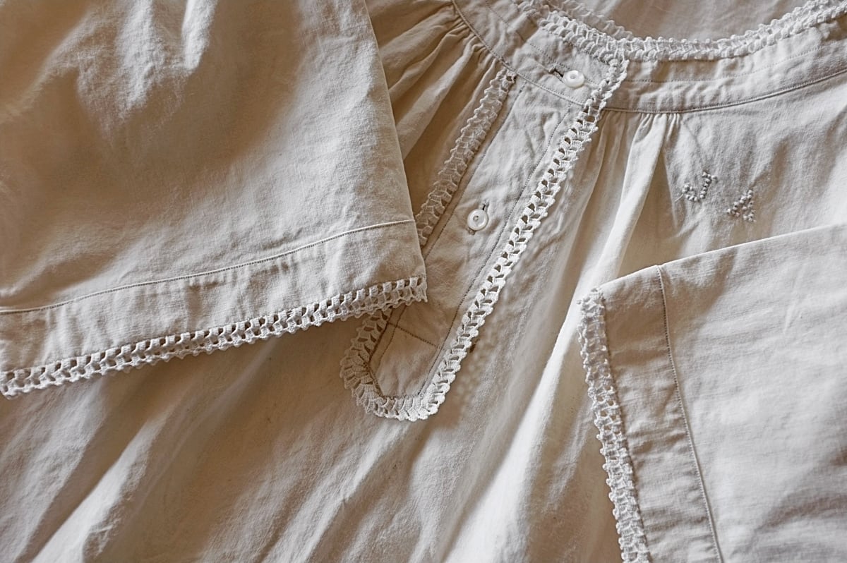 フランス 1900s ダミエのレースとモノグラムとロングワンピースa アンティーク