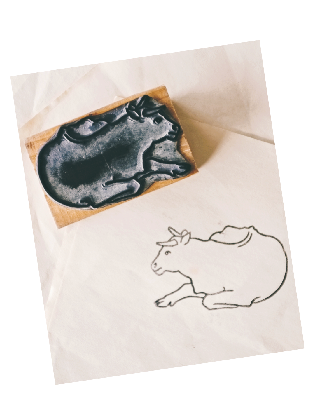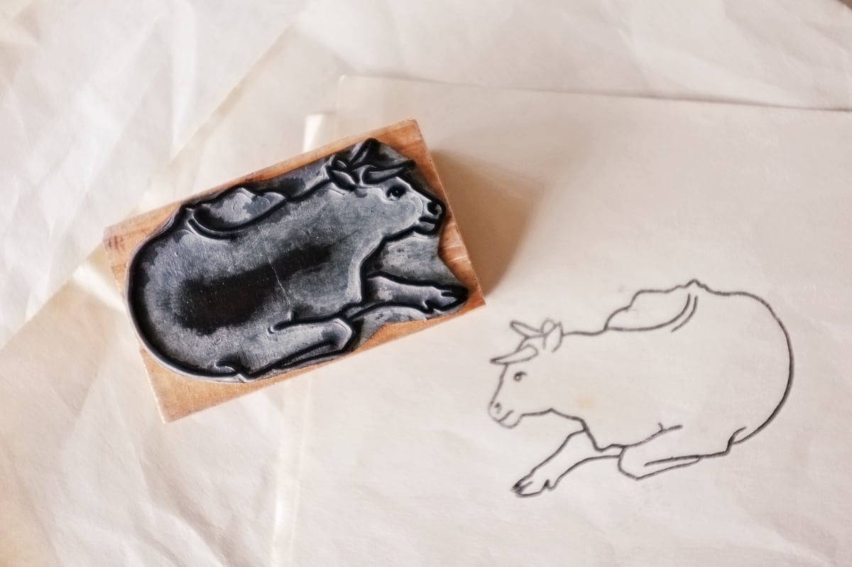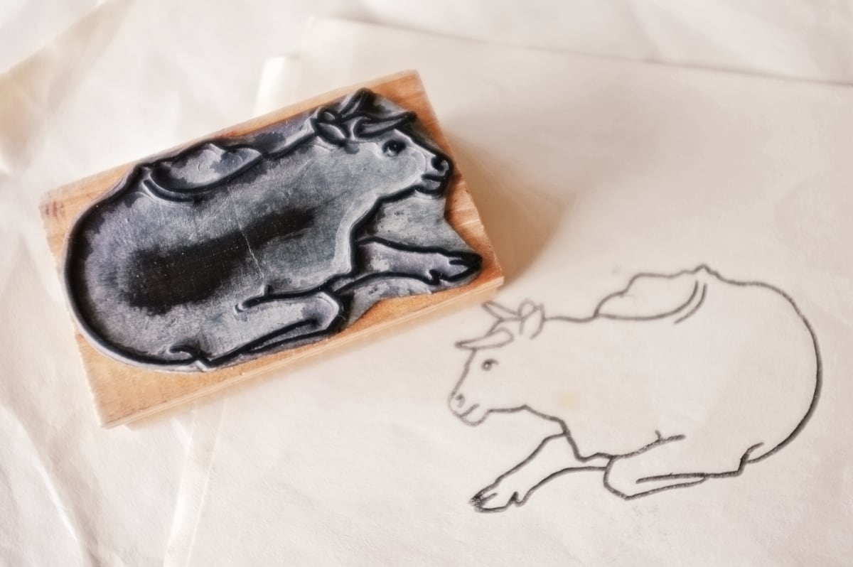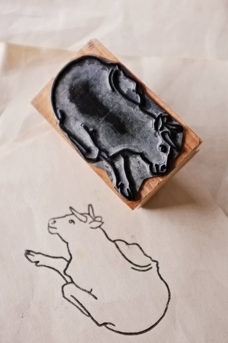 フランス 8c 微睡の大きな牛さんとメランコリーな木製スタンプ ヴィンテージ