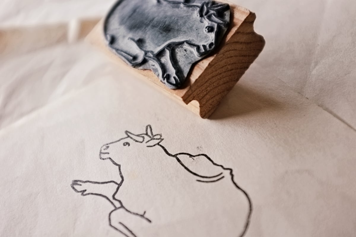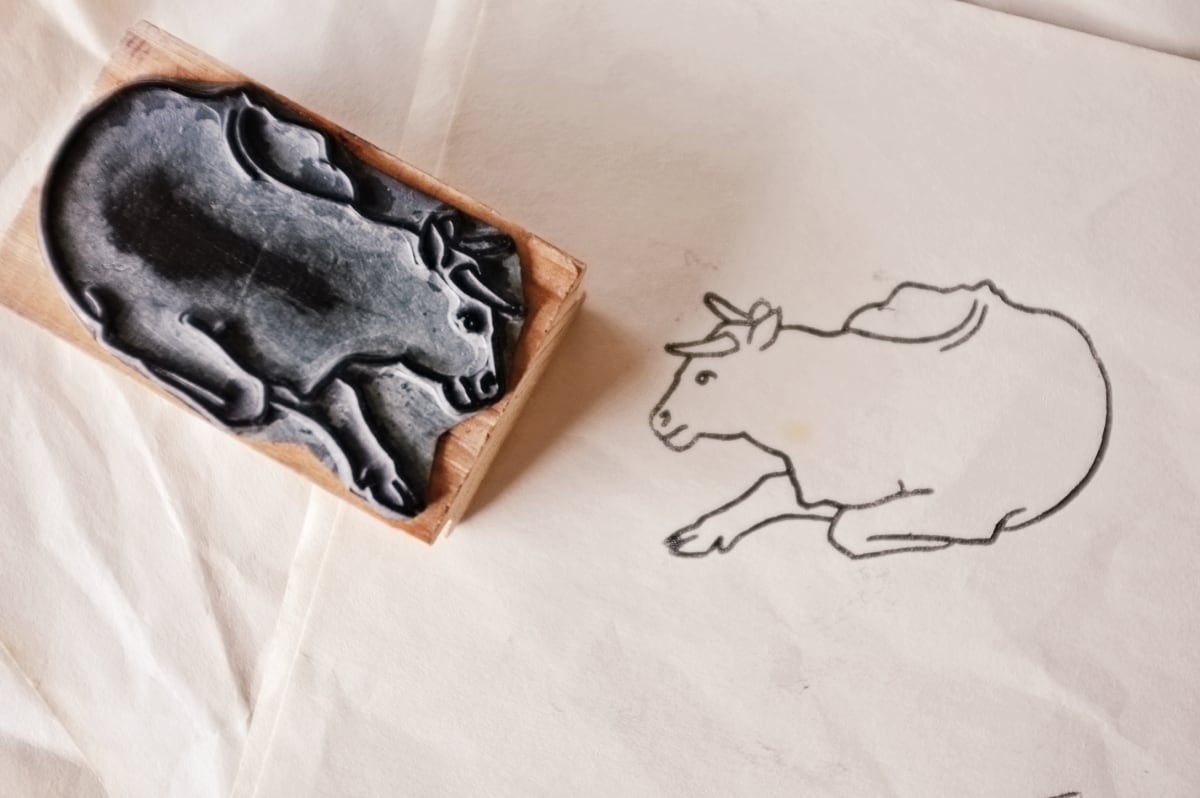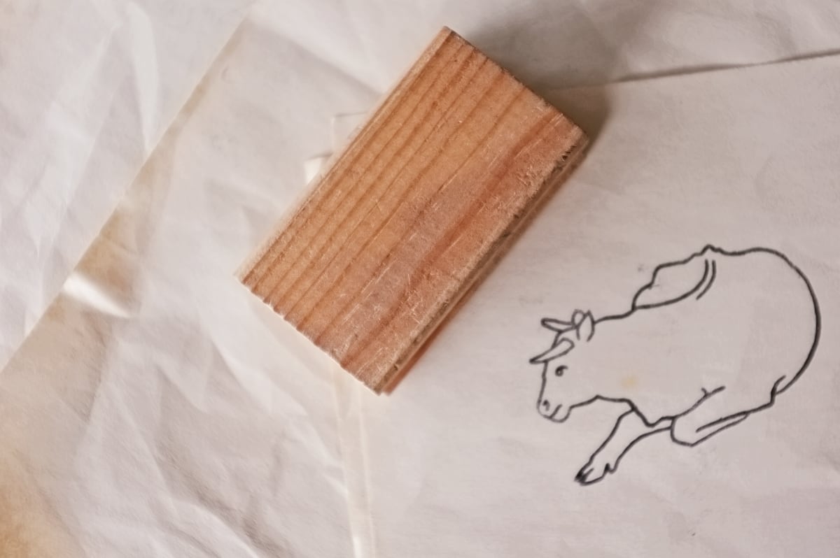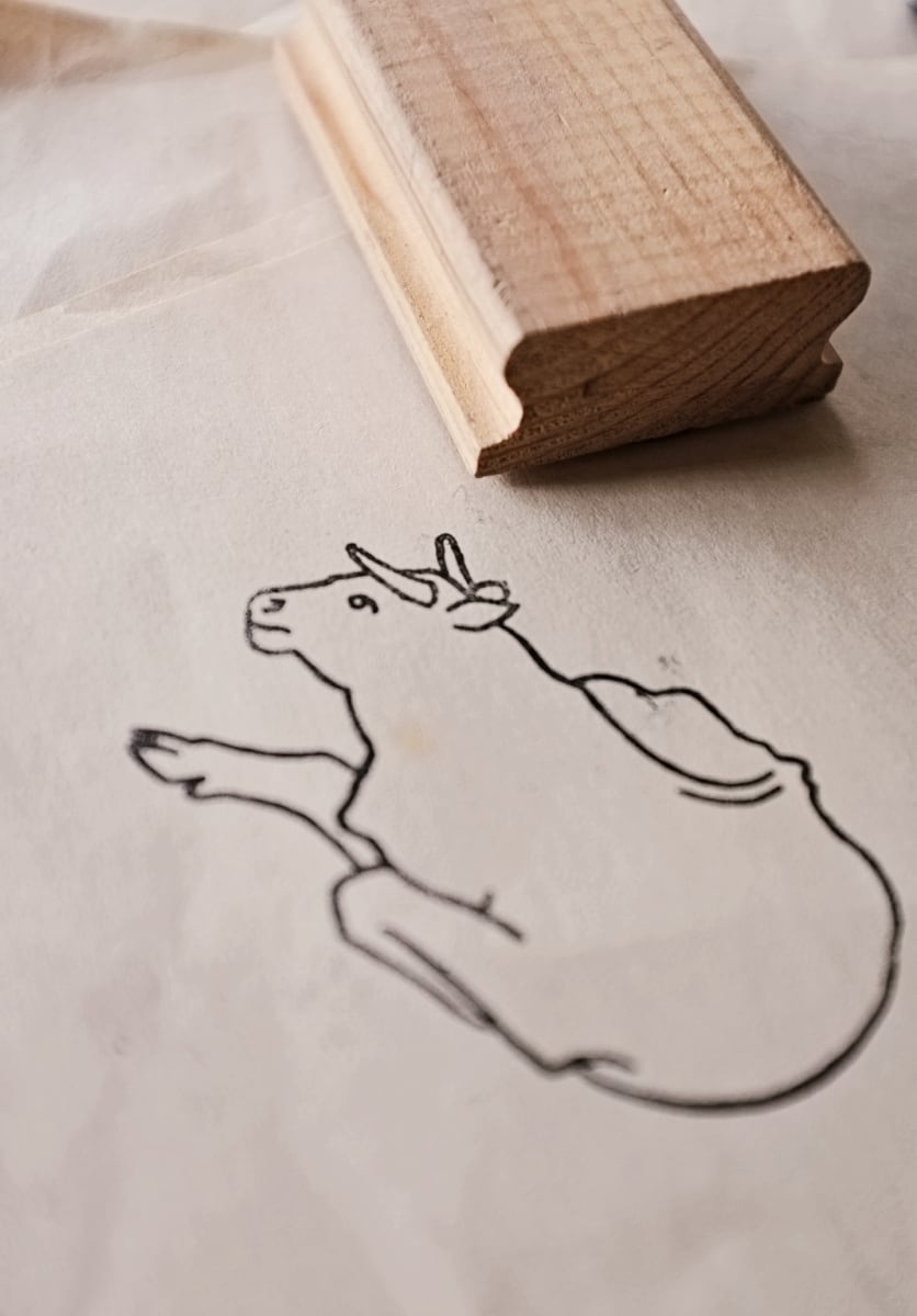 フランス 8c 微睡の大きな牛さんとメランコリーな木製スタンプ ヴィンテージ