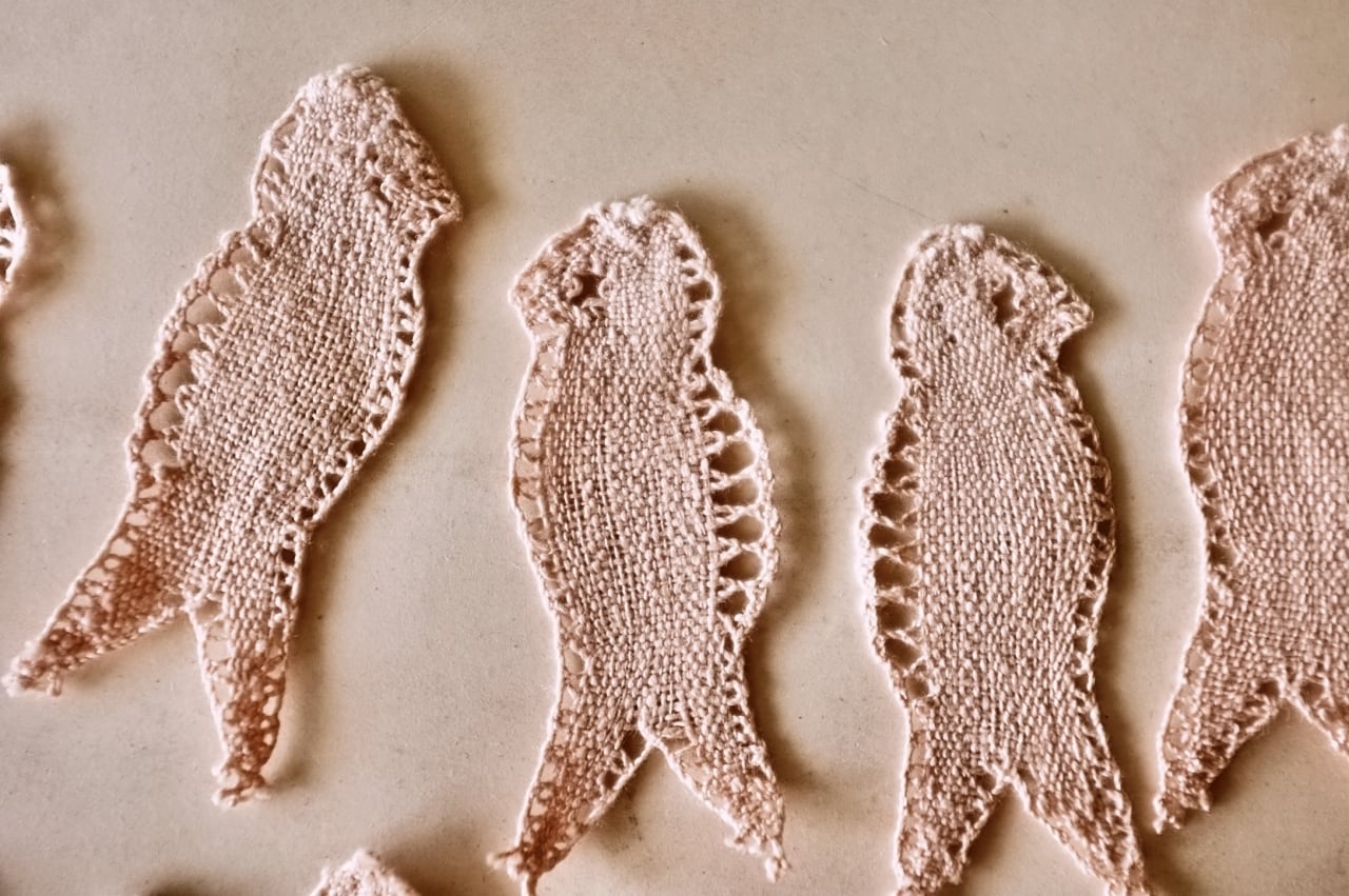 ボビンレースと柔らかな曲線で描かれた