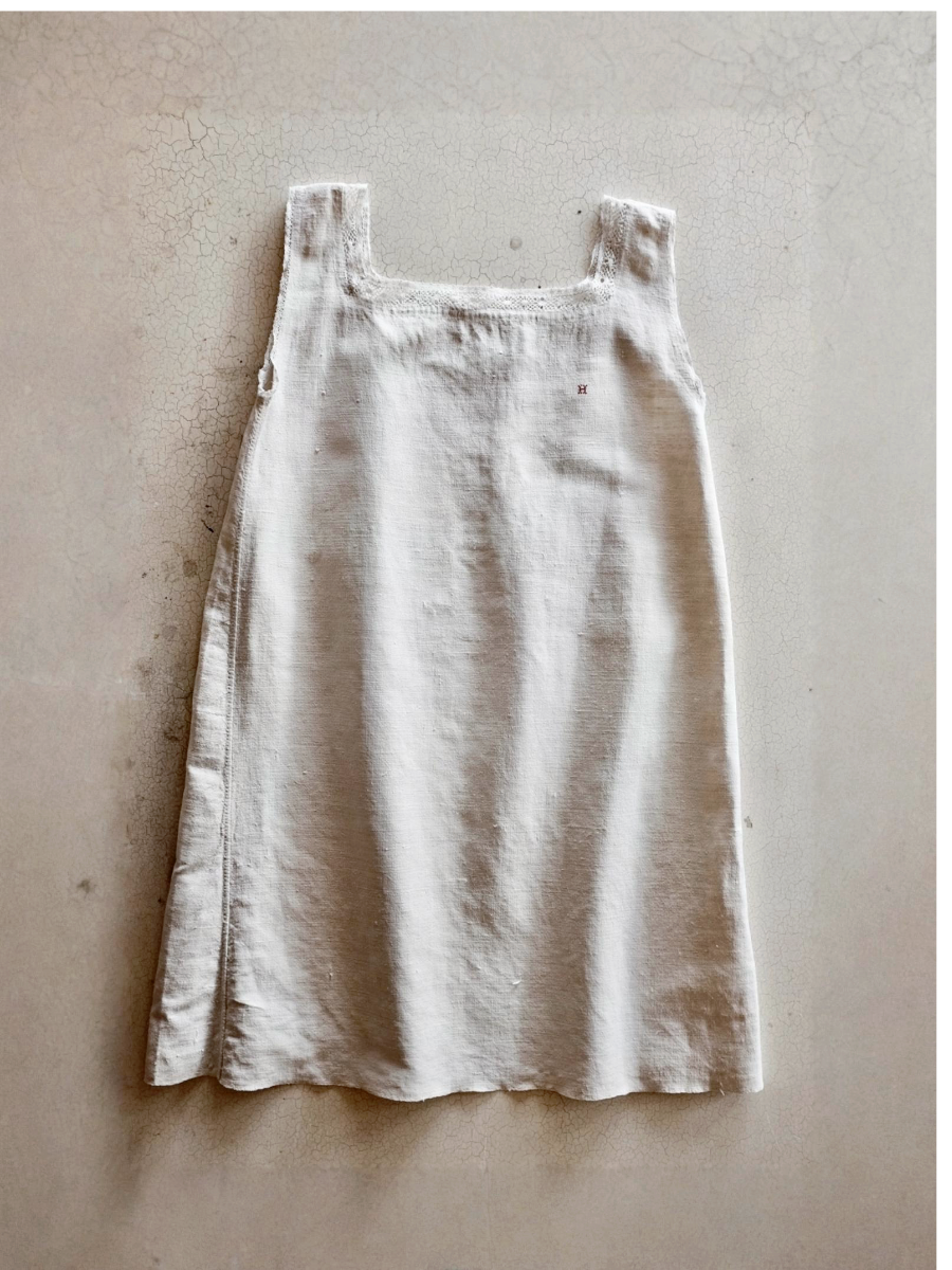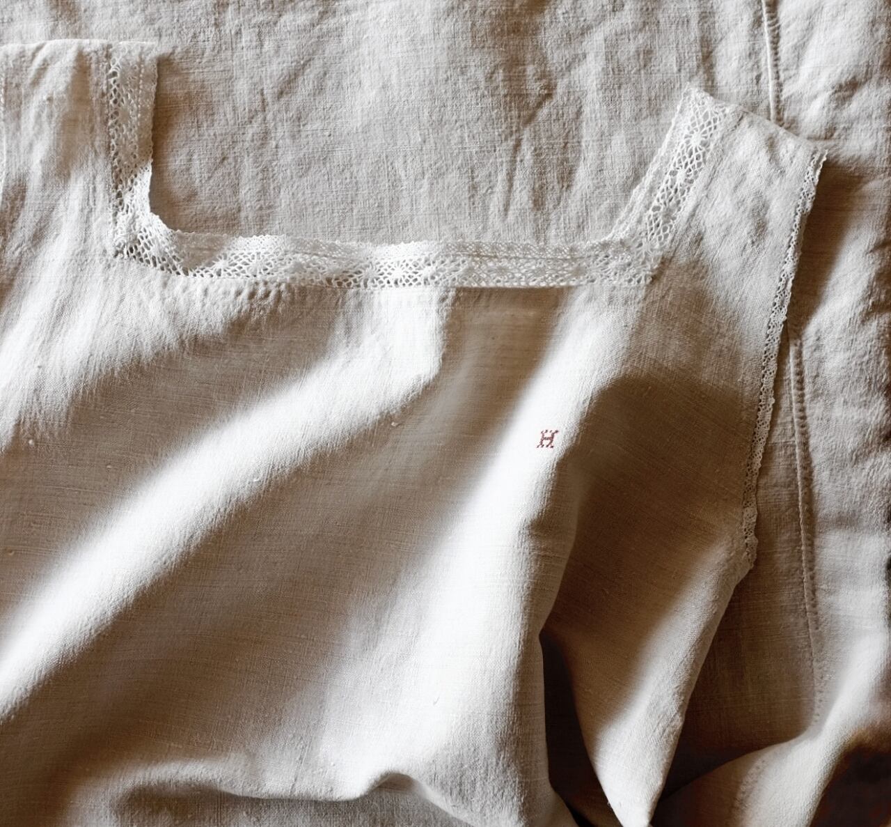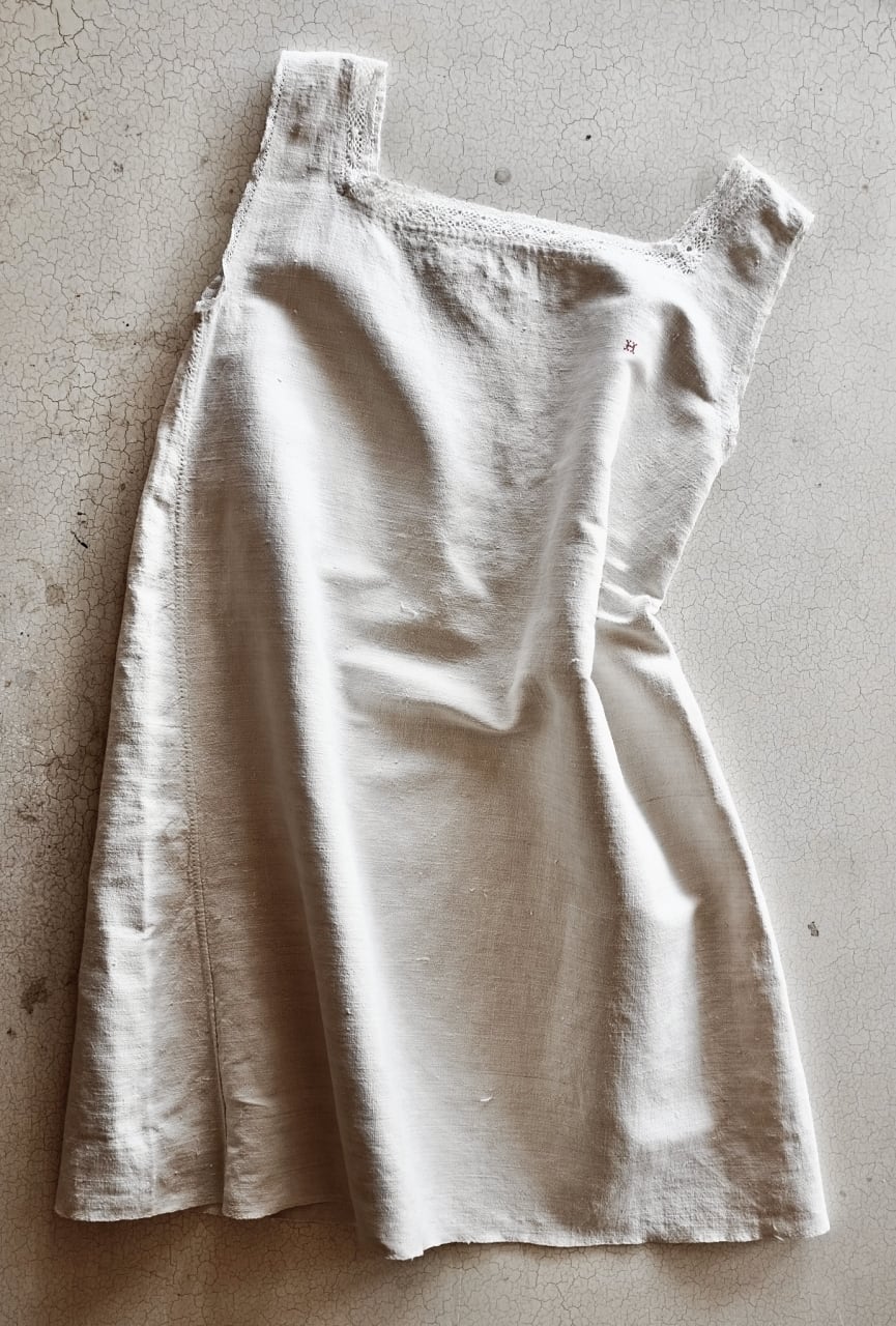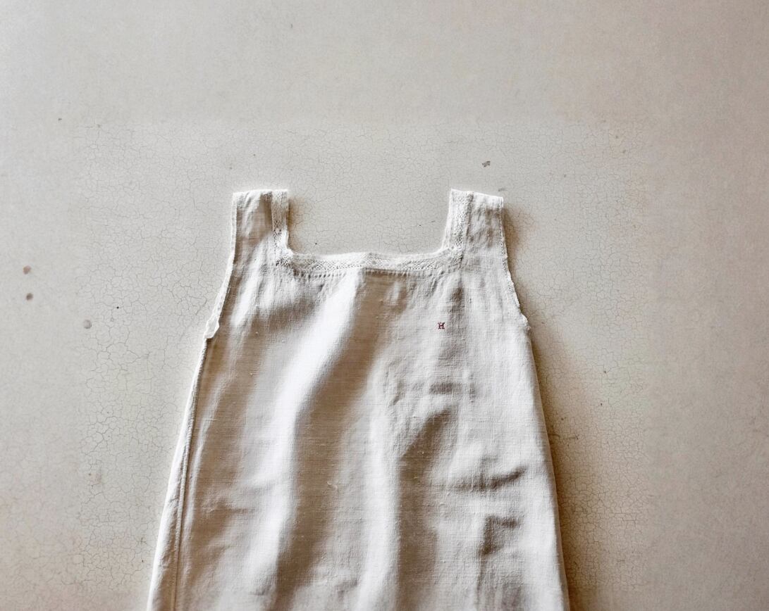 フランス 1900s 手織シャンブルリネン 物語的ワンピース アンティーク