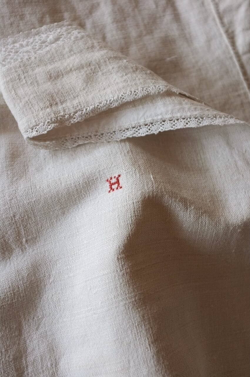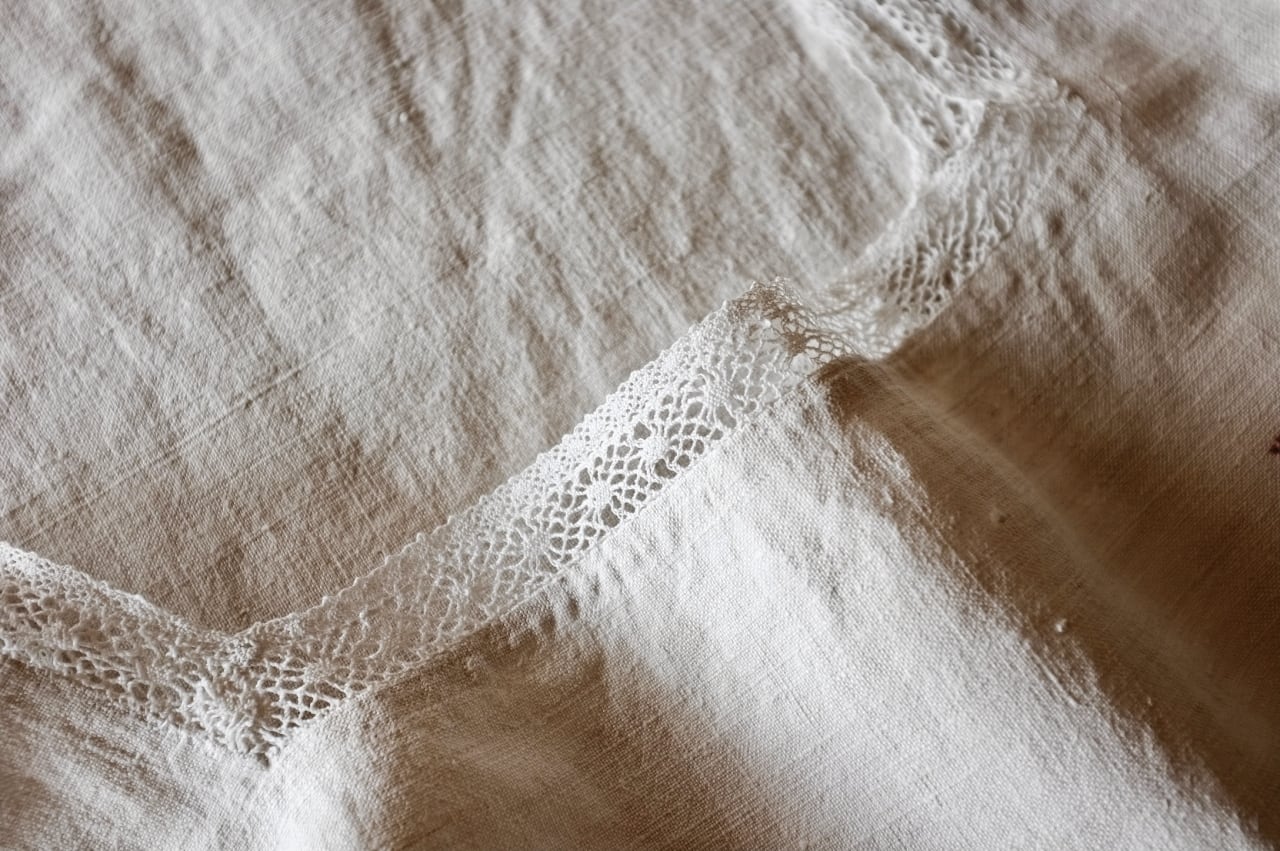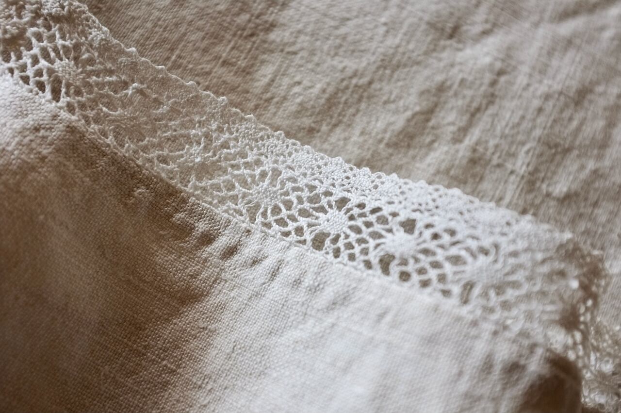 フランス 1900s 手織シャンブルリネン 物語的ワンピース アンティーク