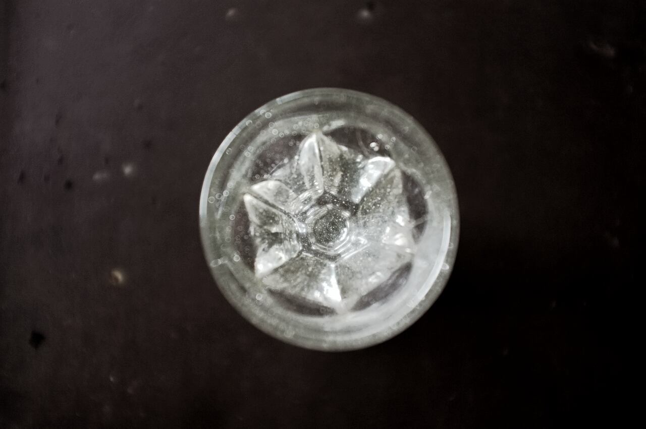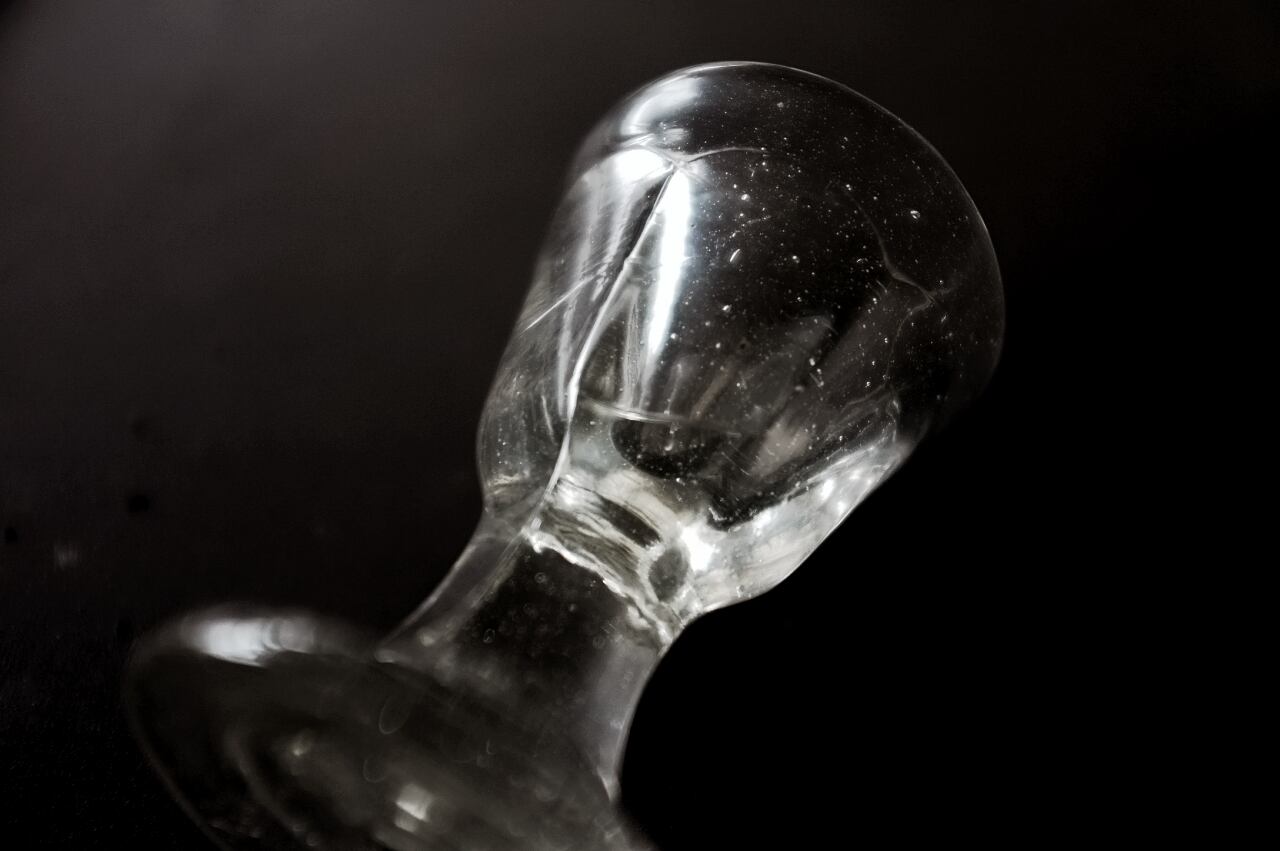 型吹きガラスの歪みと気泡がとても印象的なグラスです。