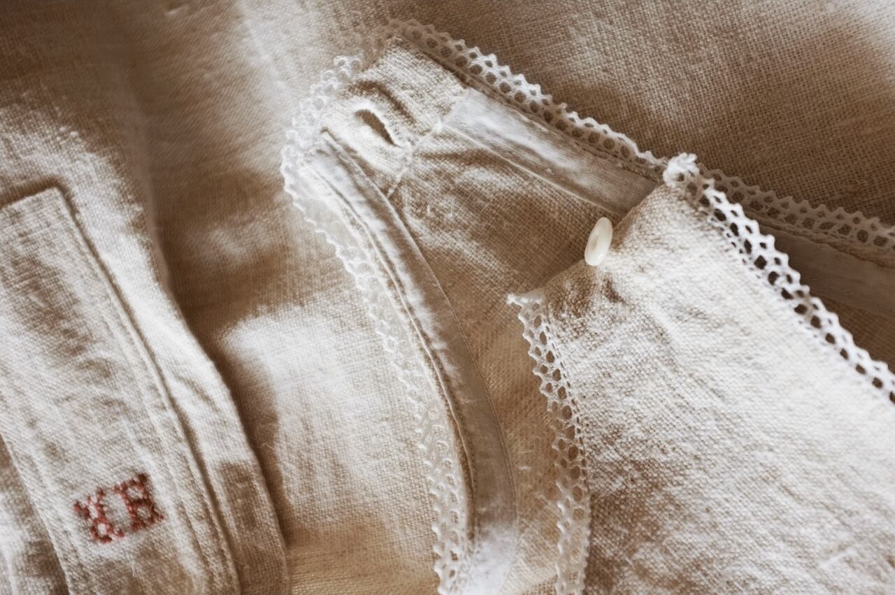小さなレースに手織りリネン、少し大きめのルージュのモノグラムと